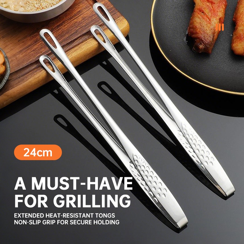 Nipiin Food Tongs for Grill Rack 304 Stainless Steel Non Slip Grip for High Heat Cooking
