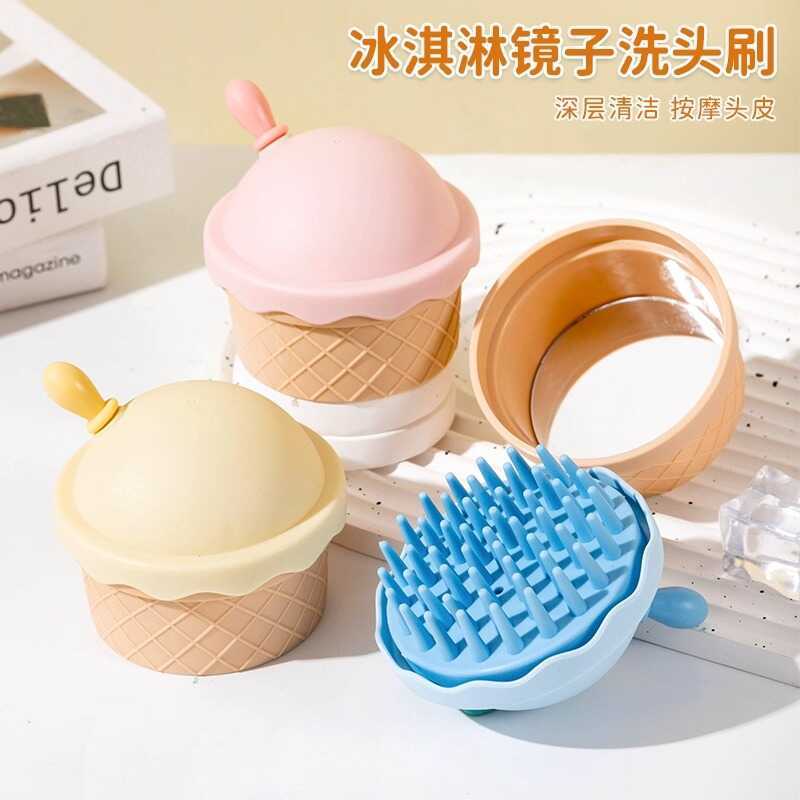 Ice Cream Mirror Shampoo Brush Cute Household Comes with HD Mirror Clean Scalp Haircut Comb Simple Portable Comb