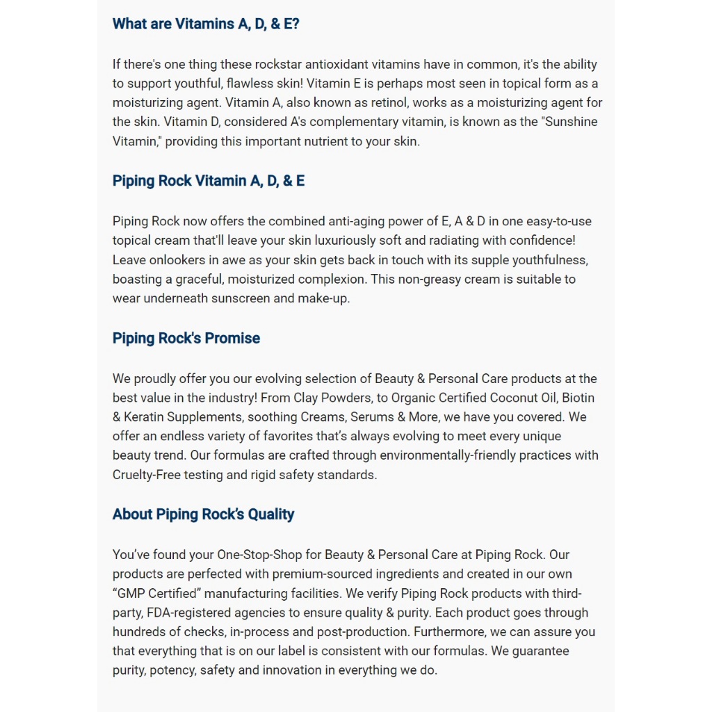 PipingRock Vitamin E, A & D 113g