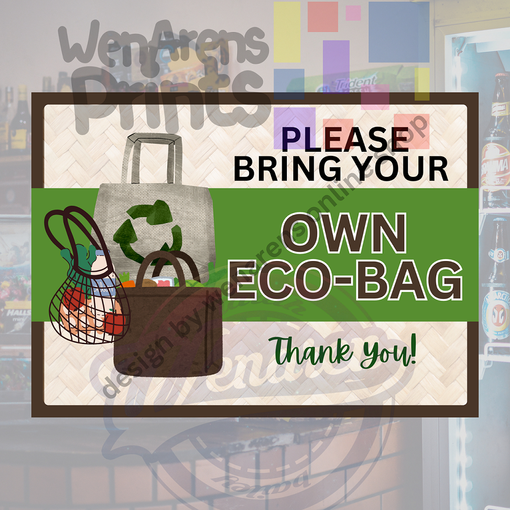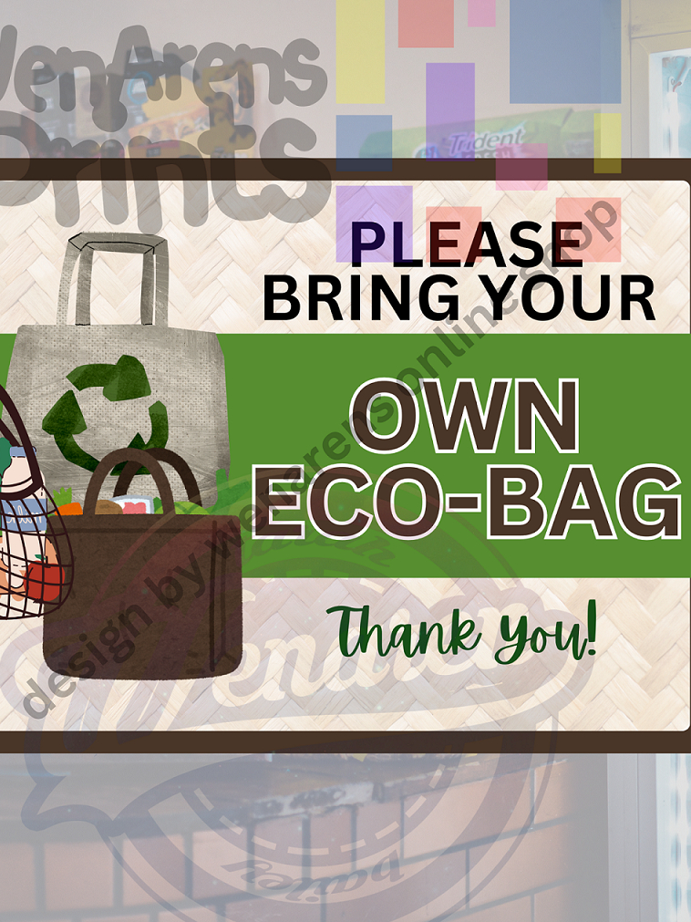 Bring your own eco bag A4 Size PVC Plastic, Laminated & Waterproof Sticker Signs