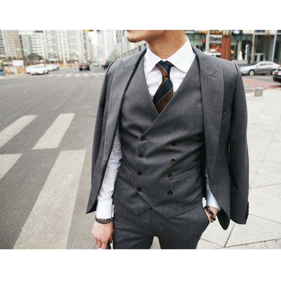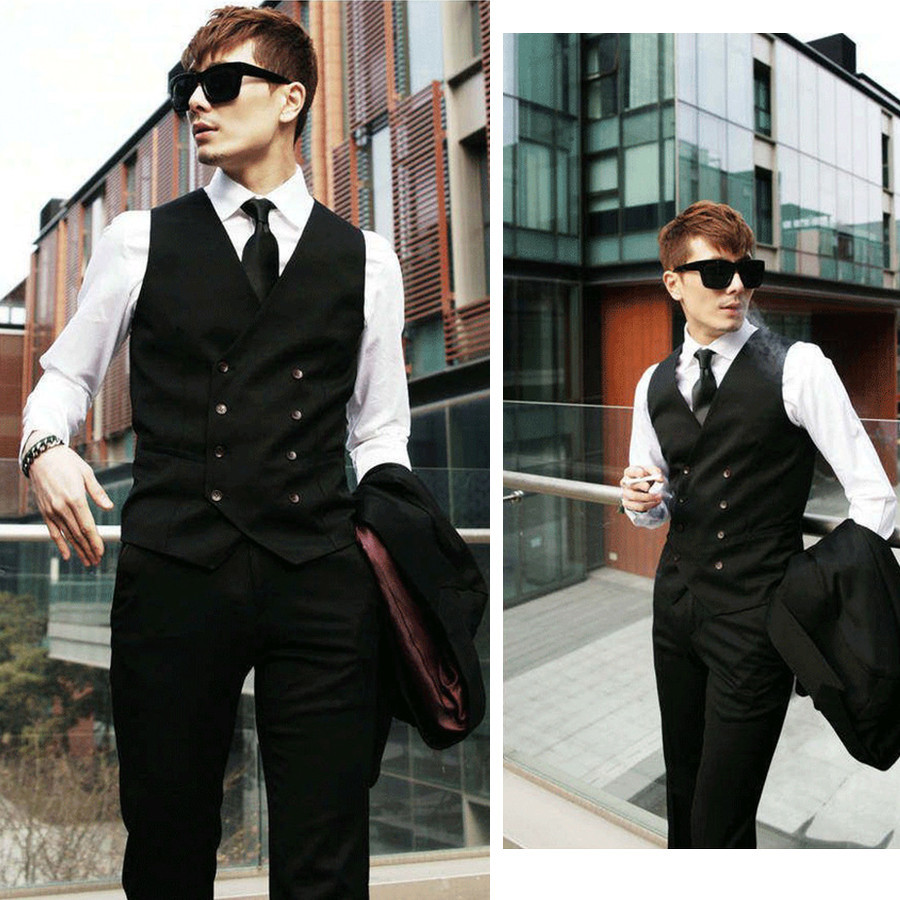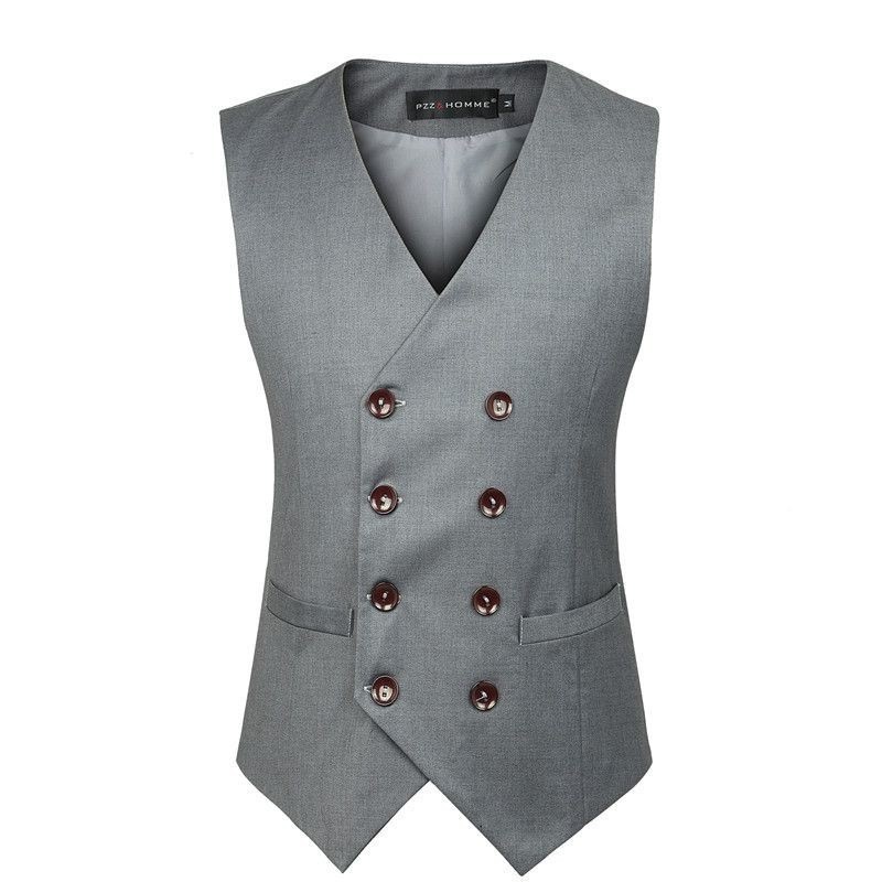 British Slim Fit Men's Double Breasted Suit Vest Business Gentleman Men's V-neck Vest