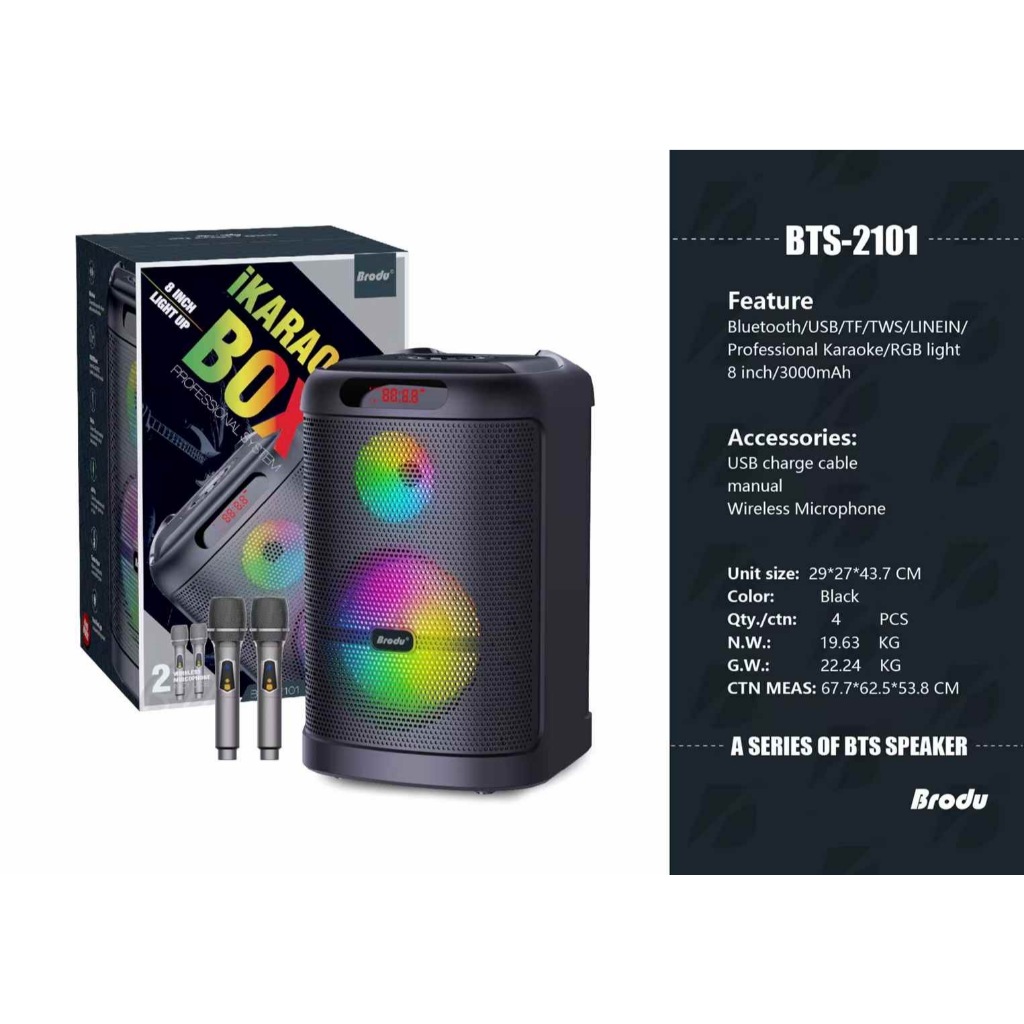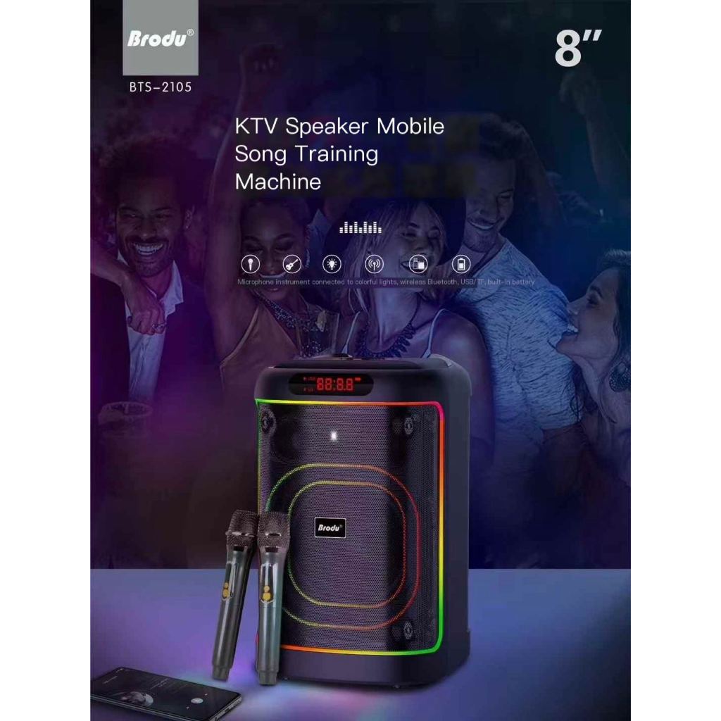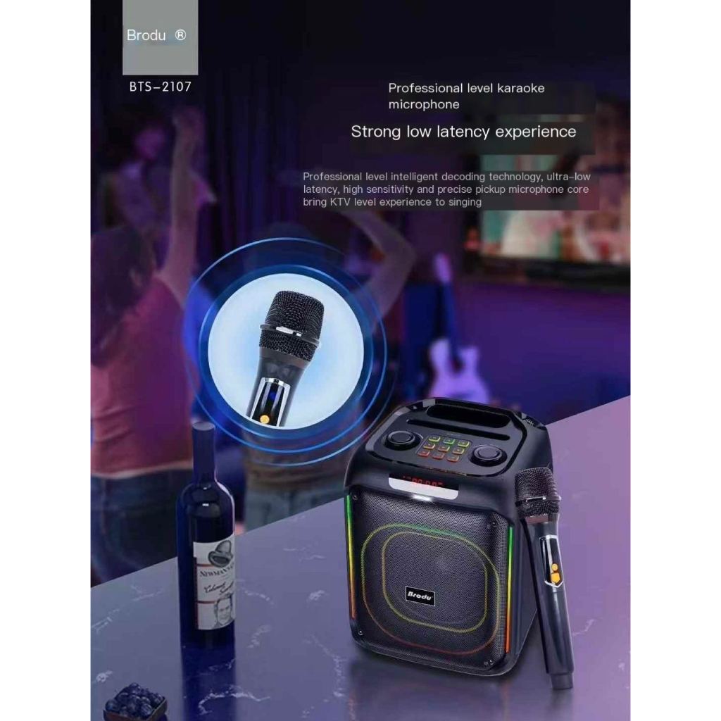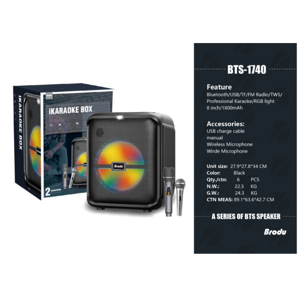 Brodu BTS-1740 Bluetooth Speaker Karaoke Speaker FlashLight HighQuality Subwoofer with 2 Microphones