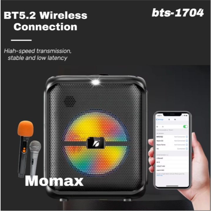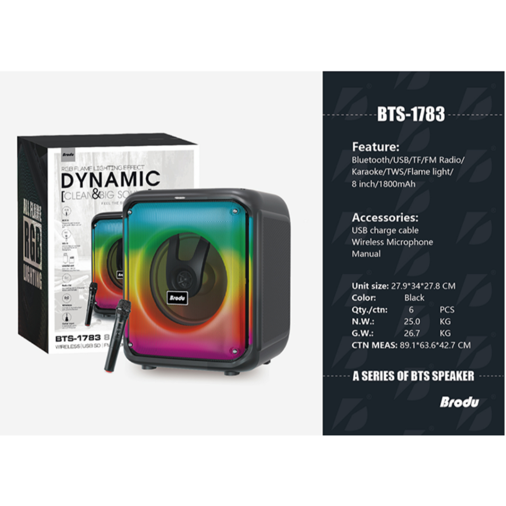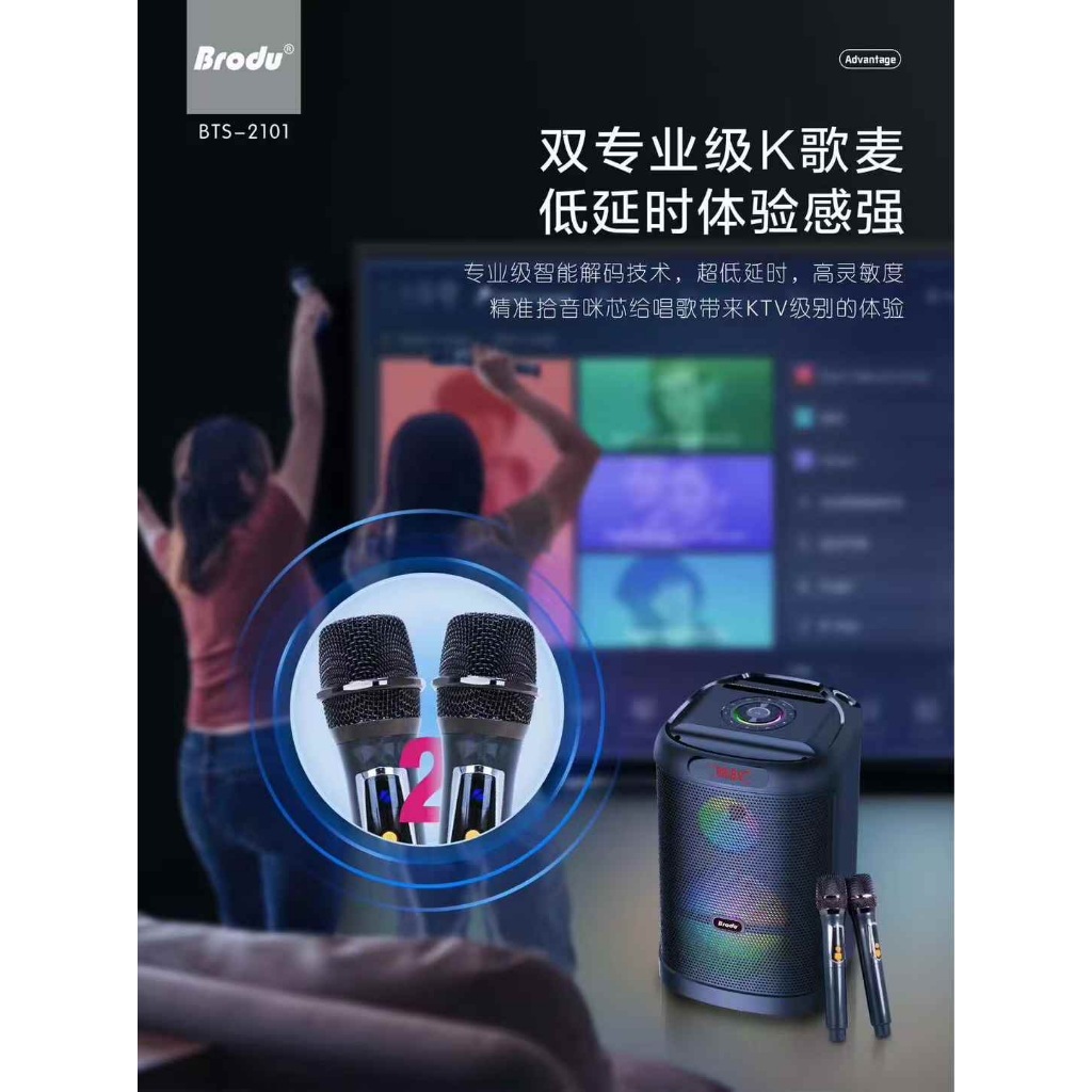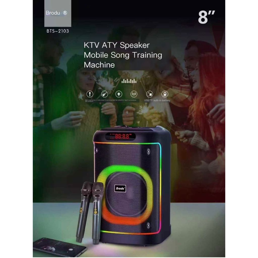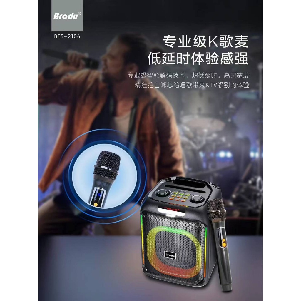 Brodu BTS-1740 Bluetooth Speaker Karaoke Speaker FlashLight HighQuality Subwoofer with 2 Microphones