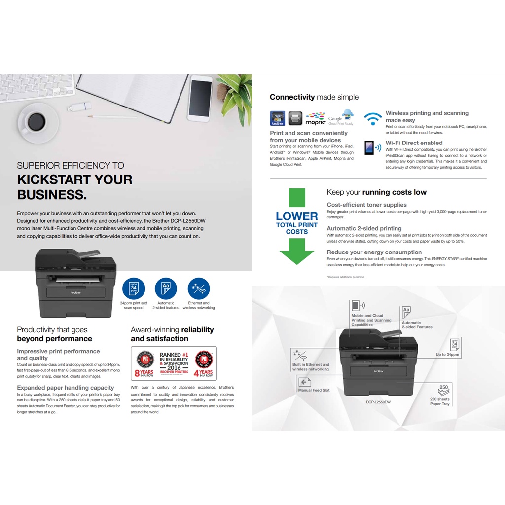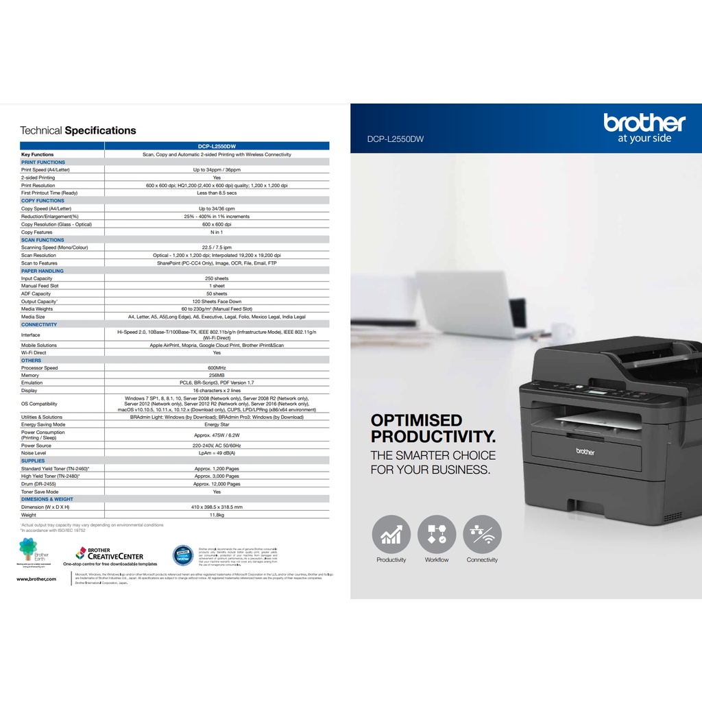 Brother Dcp L2540Dw L2550Dw Monochrome 3 In 1 Laser Printer Scanner Xerox With Wi-Fi Printing