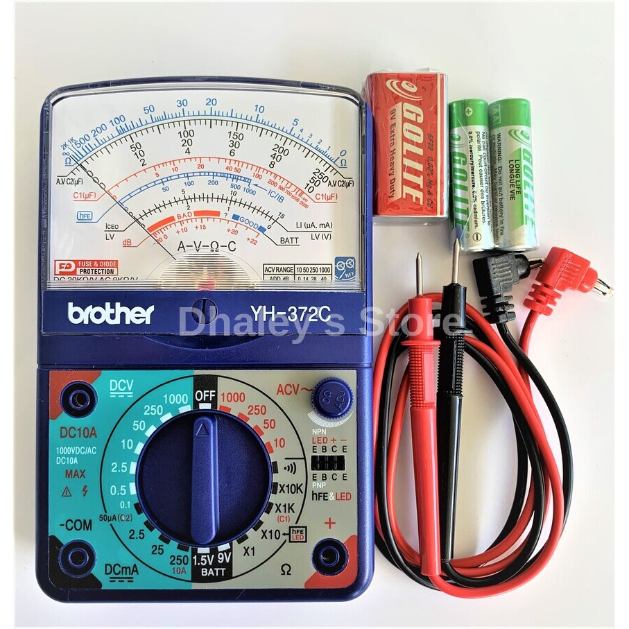 Brother YH-372C Multitester Multimeter Analog Tester with Continuity Buzzer Free AA and 9V Battery