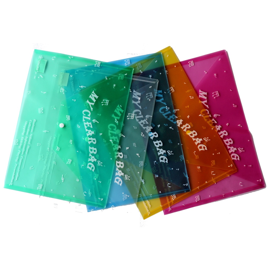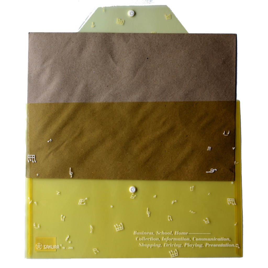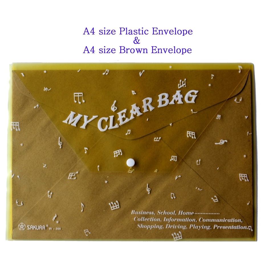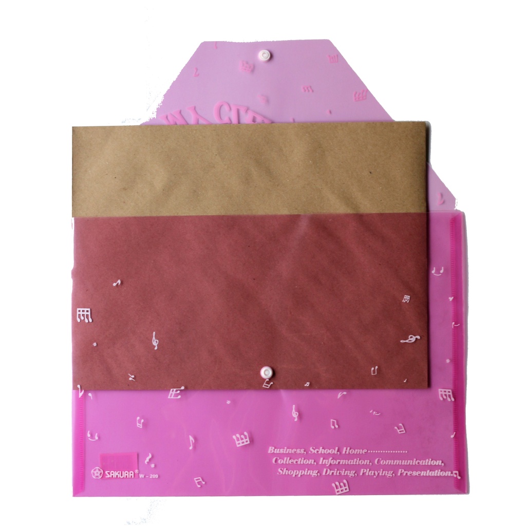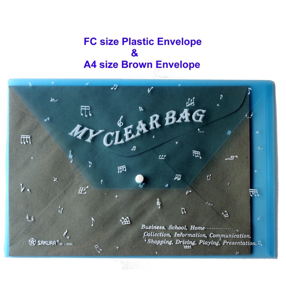 Brown Document Envelope with SAKURA Clear Envelope Bag with Snap button flap closure