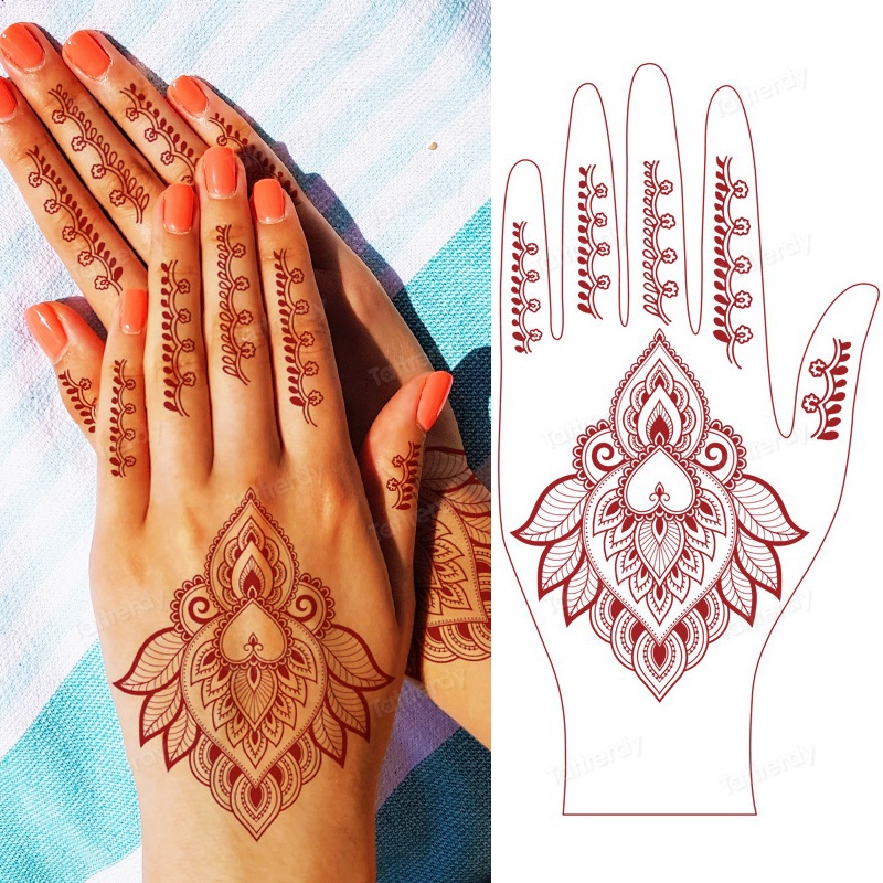 Brown Henna Design Stickers Mehndi Henna Tattoo for Hand Temporary Tattoos Women Bride Lace Waterproof Fake Tatoo Moroccan Hena