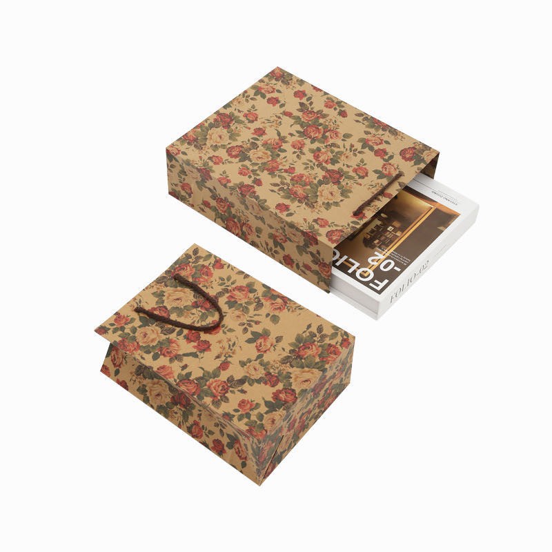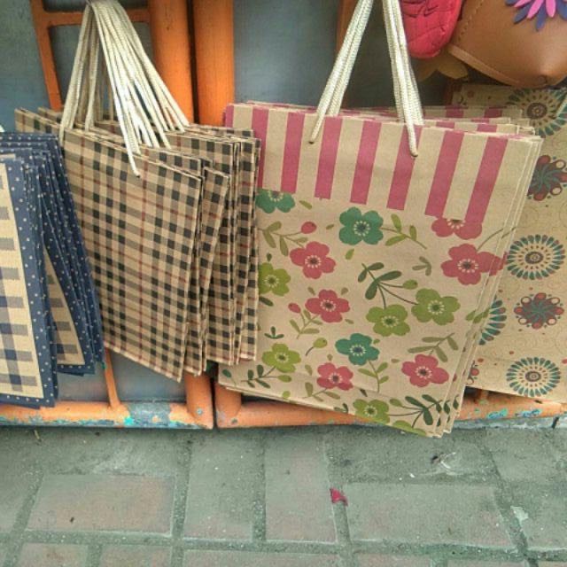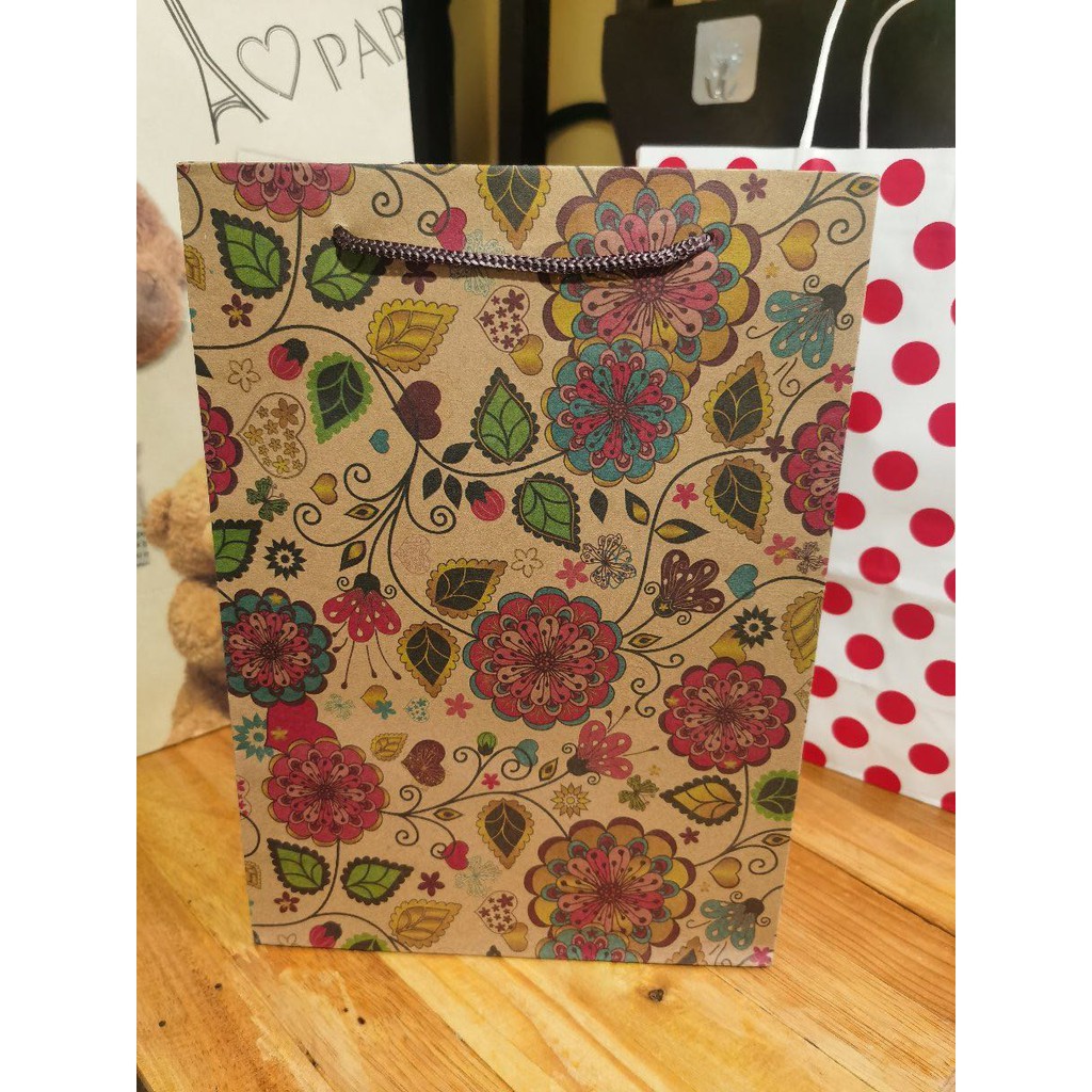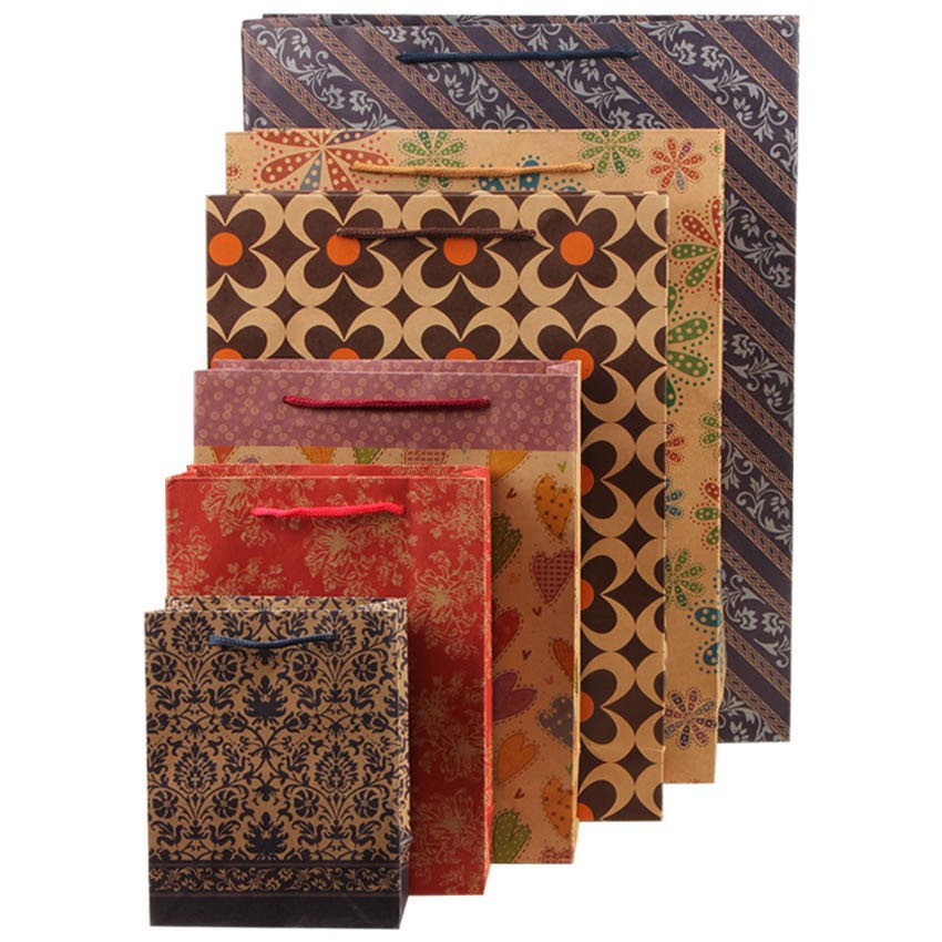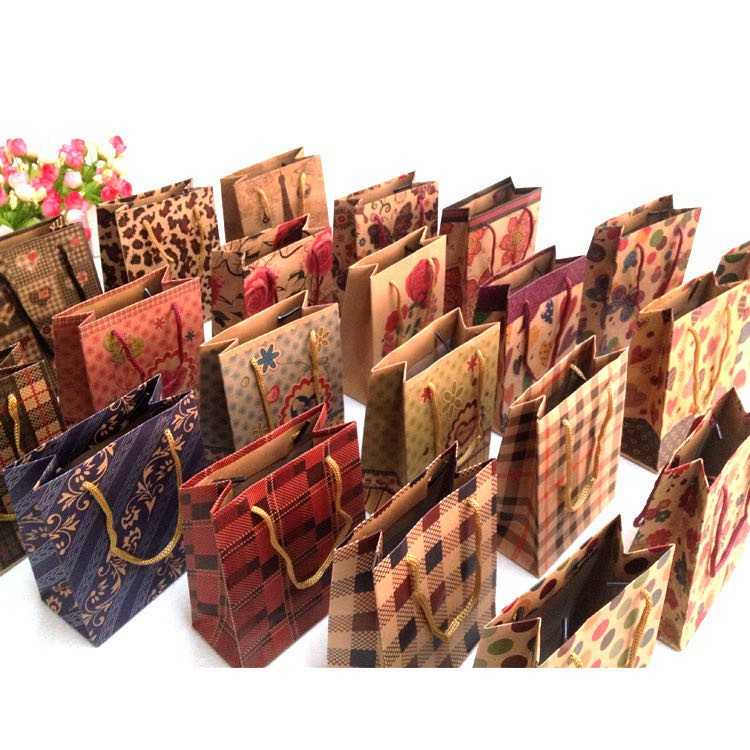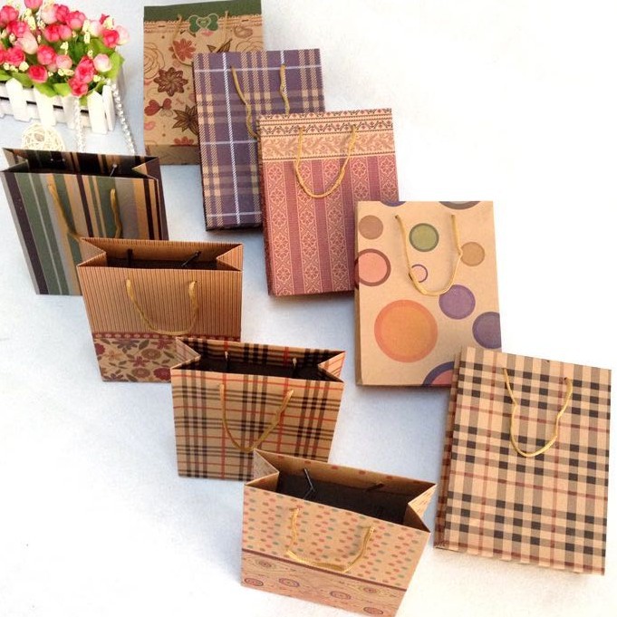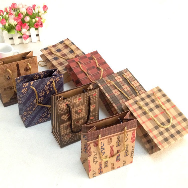Brown Kraft Paper Bag Nice Pattern Random Design Hand bag Gift bag Paperbag YYFT