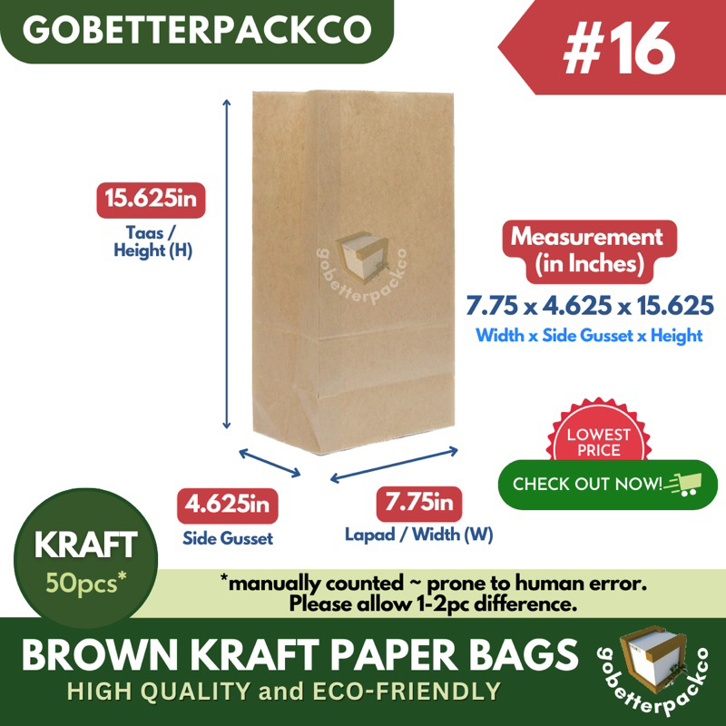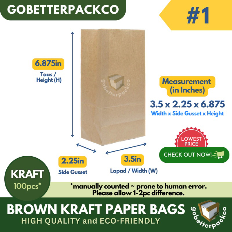 Brown Kraft Paper Bags ALL SIZES (Small Sizes by 100s | Big Sizes by 50s)