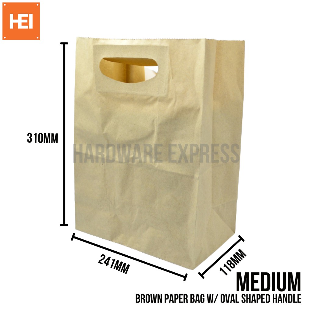 Brown Paper Bag with Oval Shaped Handle (Punch Hole Handle) 10's