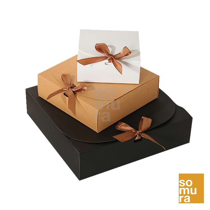 Brown/White Clamshell With Ribbon Cardboard Pastry Gift Box Packaging Box (SSC854)