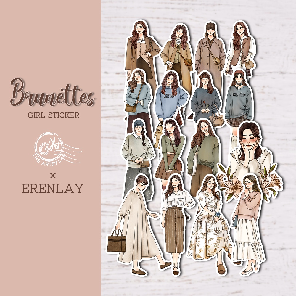 Brunette Girl Sticker, Die Cut, Bujo, Journal Planner, Aesthetic Fashion, Cute, Brown, Artsy lab