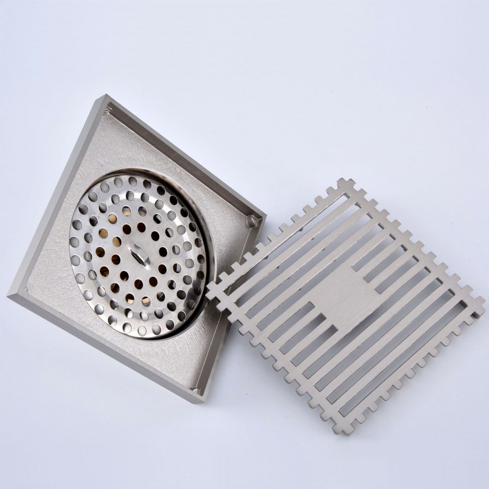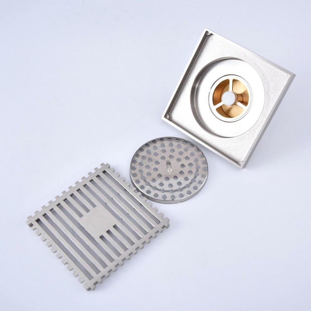 Brushed Nickel Finished Brass Square Floor Drain Anti-Odor Shower Sewage Cap With Hair Strainer Cove