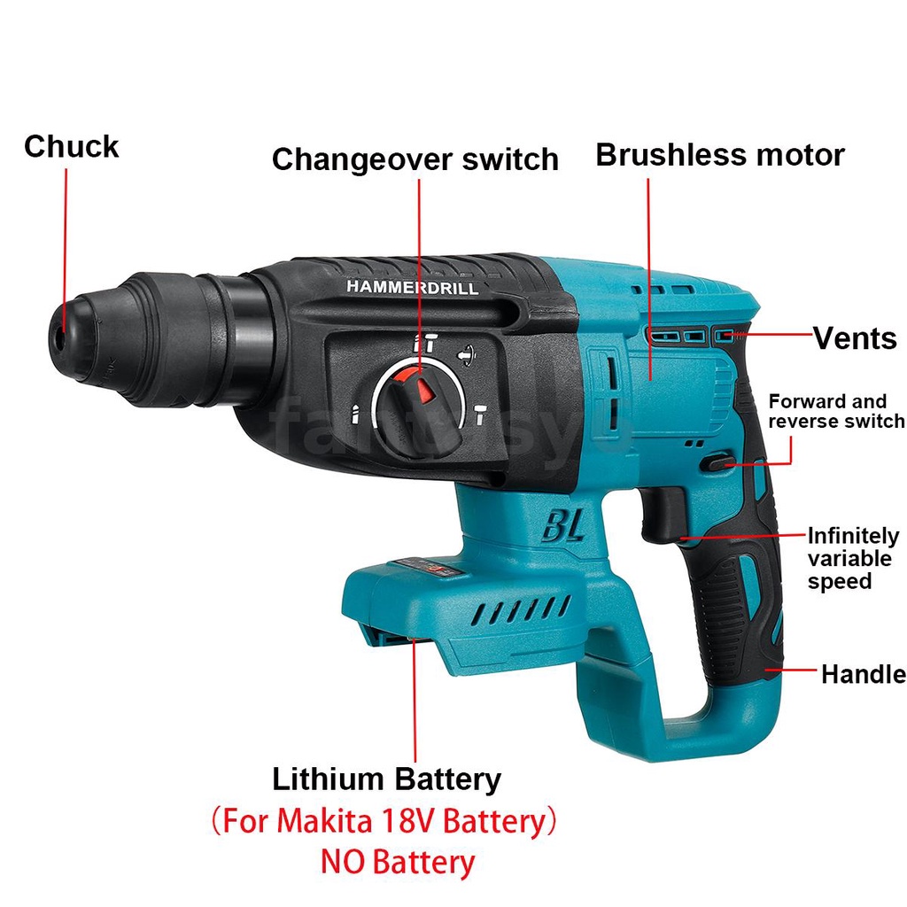 Brushless Rechargeable Electric Hammer Drill Impact Drill For Makita 18V Battery 4 In 1 Hammer/Turning/Pick/Drill