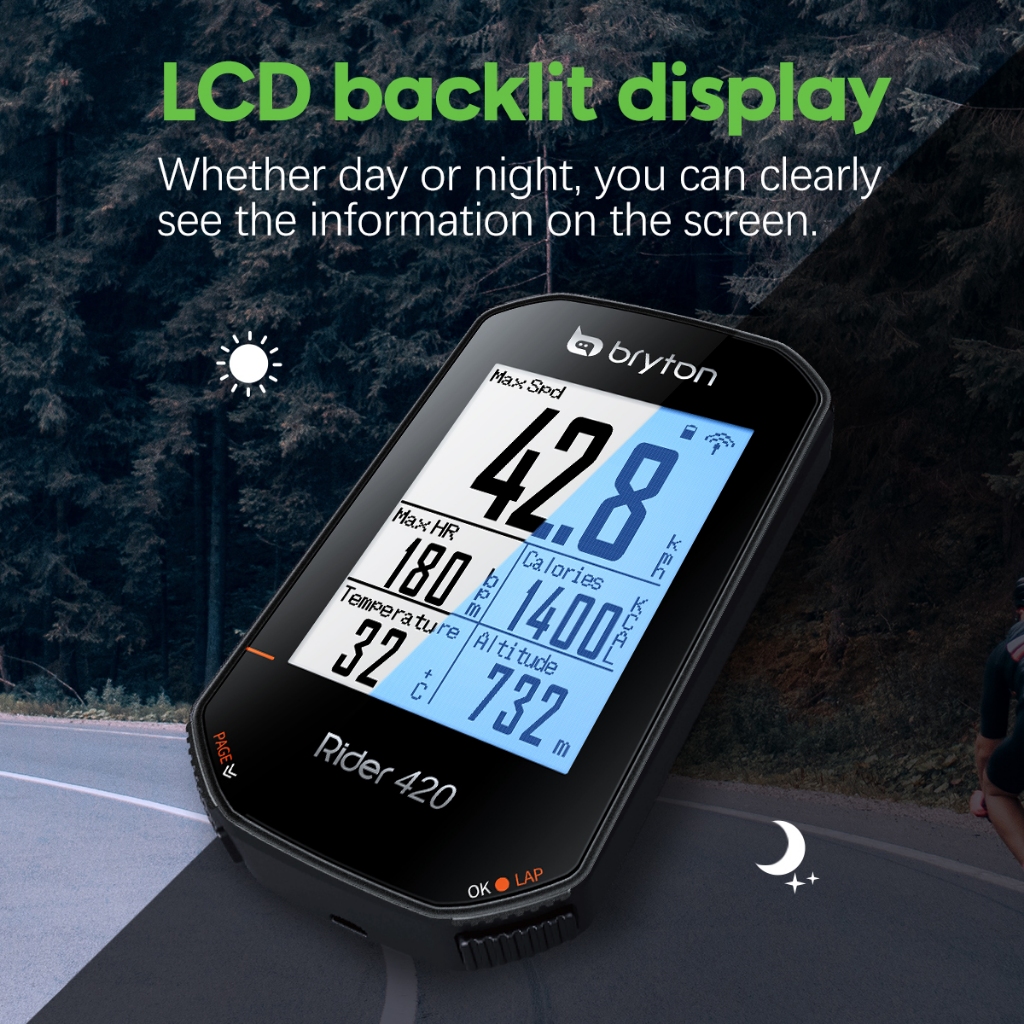 Bryton Rider420 Route Navigation Rider 420 420E GPS Bike Computer Bicycle Cycling Training Odometer Speedometer IPX7 waterproof portable ANT+ connectable to external devices