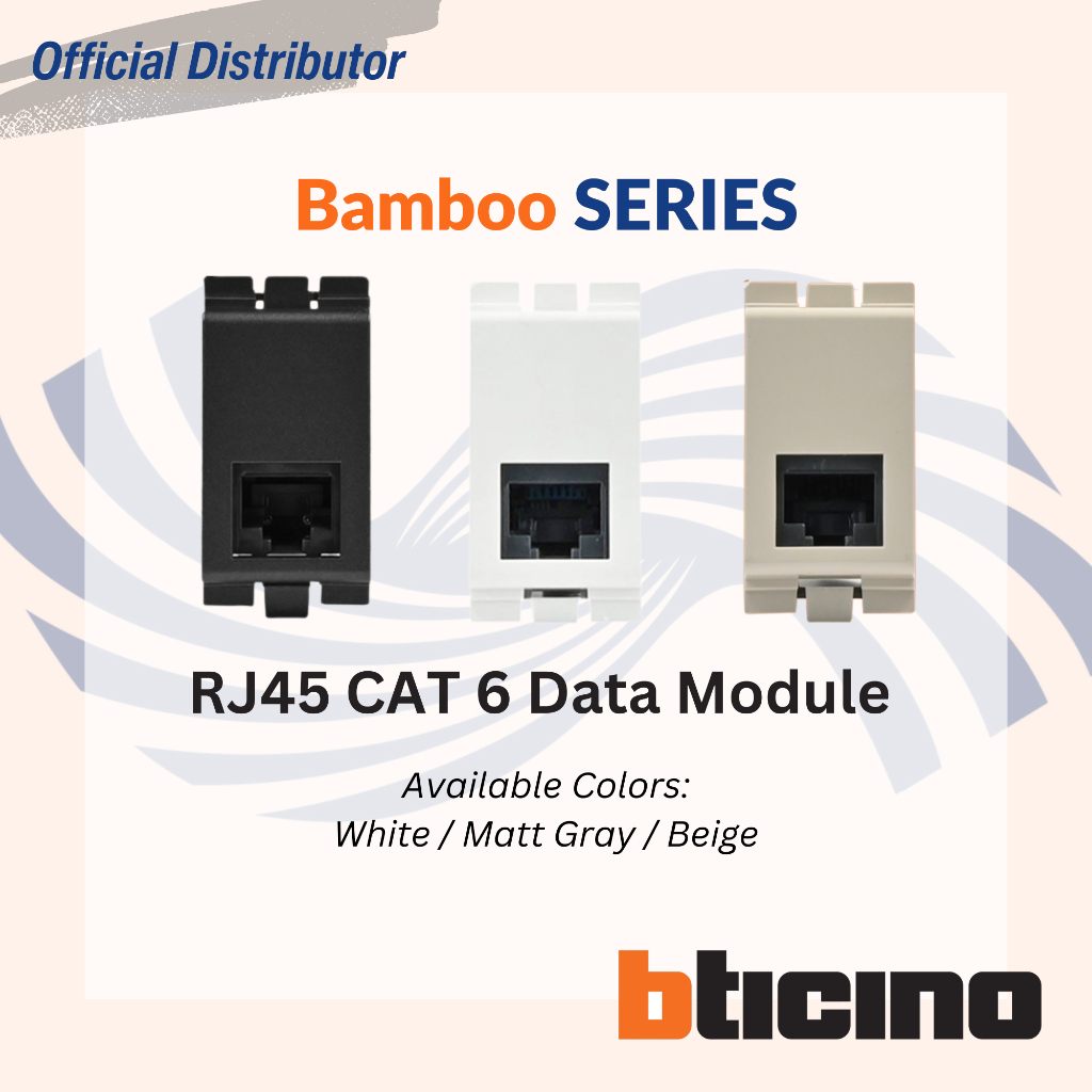 Bticino Bamboo RJ45 CAT 6 Data Outlet Module, Toolless Connection (Module Only)