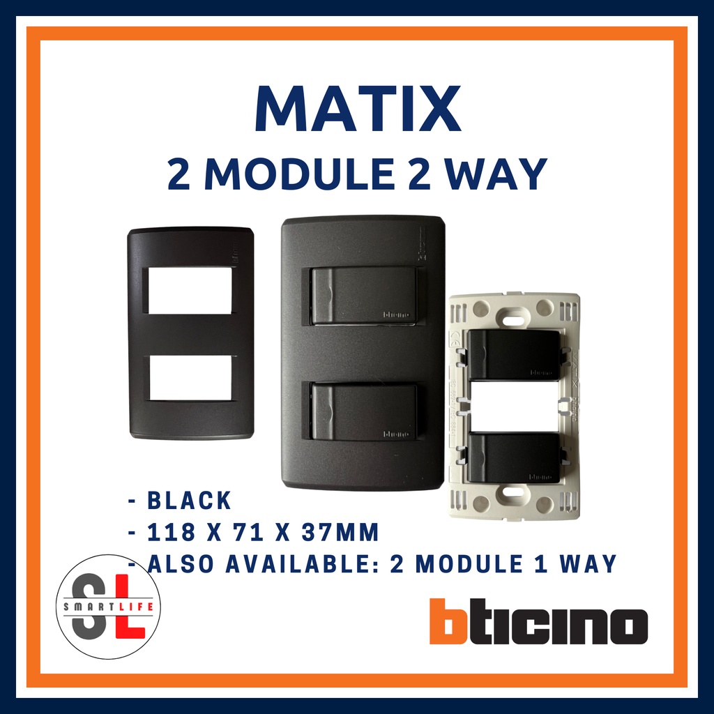 Bticino Matix 16A 1/2/3 Gang 1/2 Way Single Switch Module with Cover Plate (Color: Black)