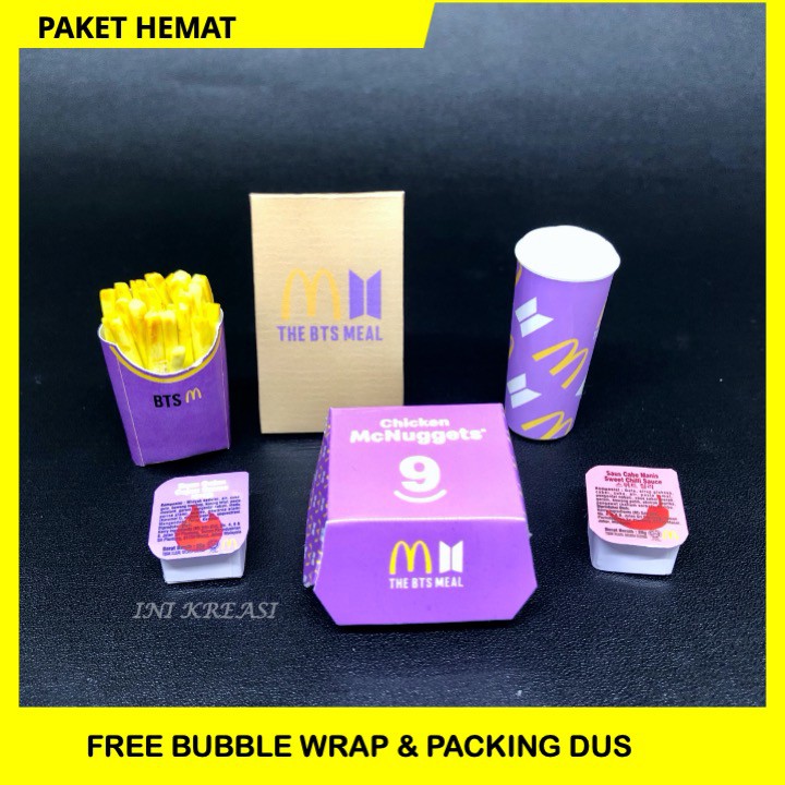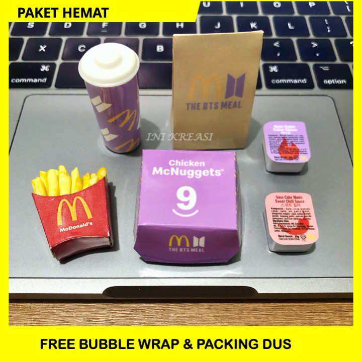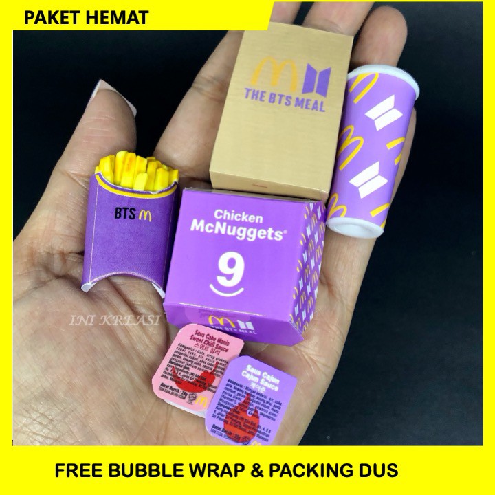 BTS MINIATURE FRIDGE STICKER SAVING PACKAGE MEAL MCD PACKAGING + Kentang