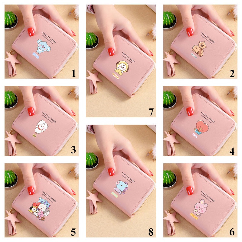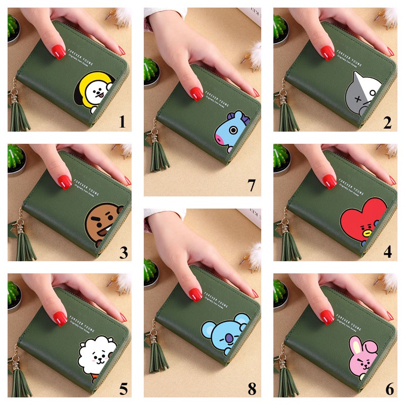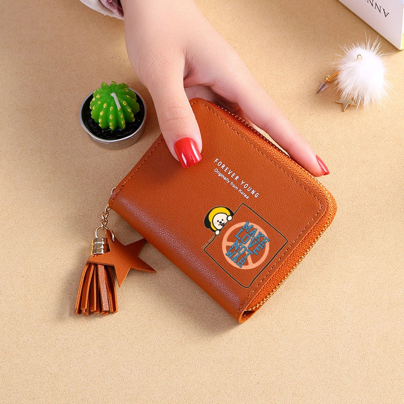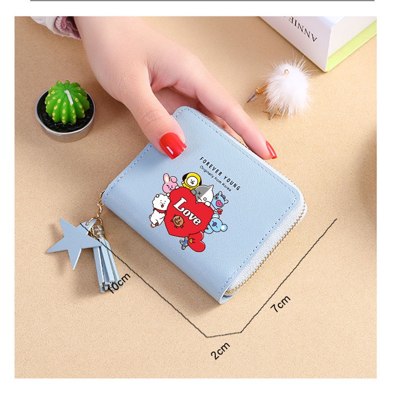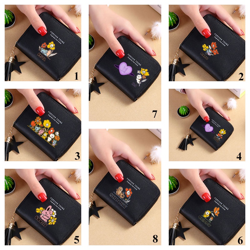 Bts Wallet Card Wallet New Korean Square Wallet Short Zipper Wallet Tassel Mini Coin Purse Bt21 Cartoon Wallet