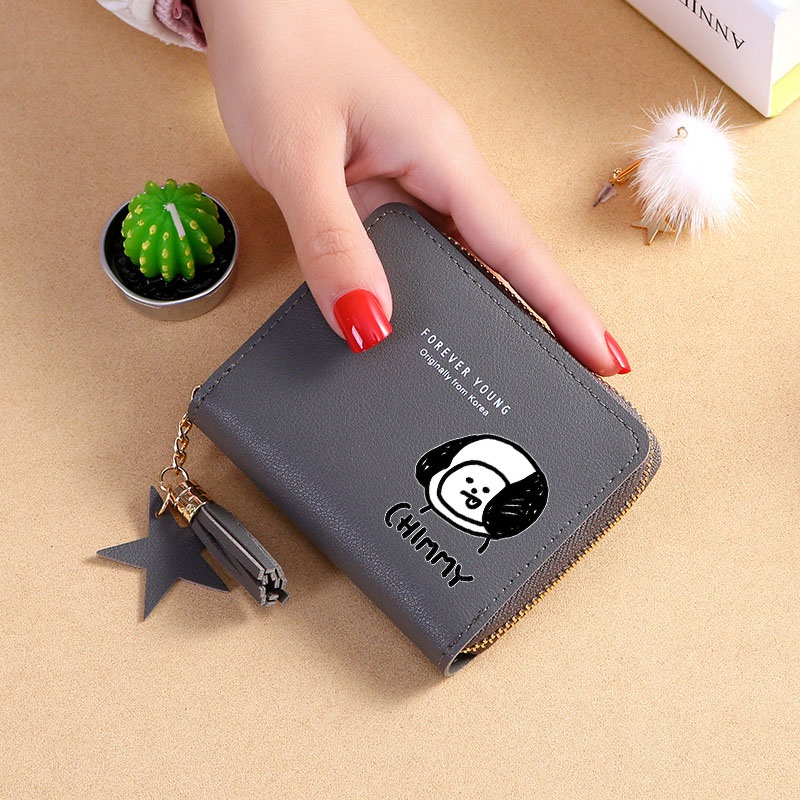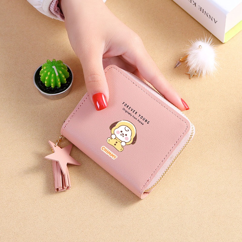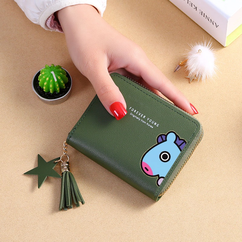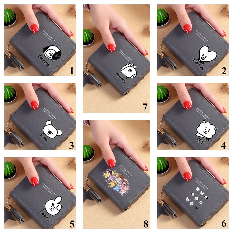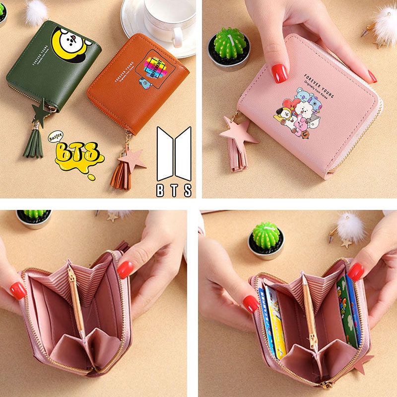 Bts Wallet Card Wallet New Korean Square Wallet Short Zipper Wallet Tassel Mini Coin Purse Bt21 Cartoon Wallet