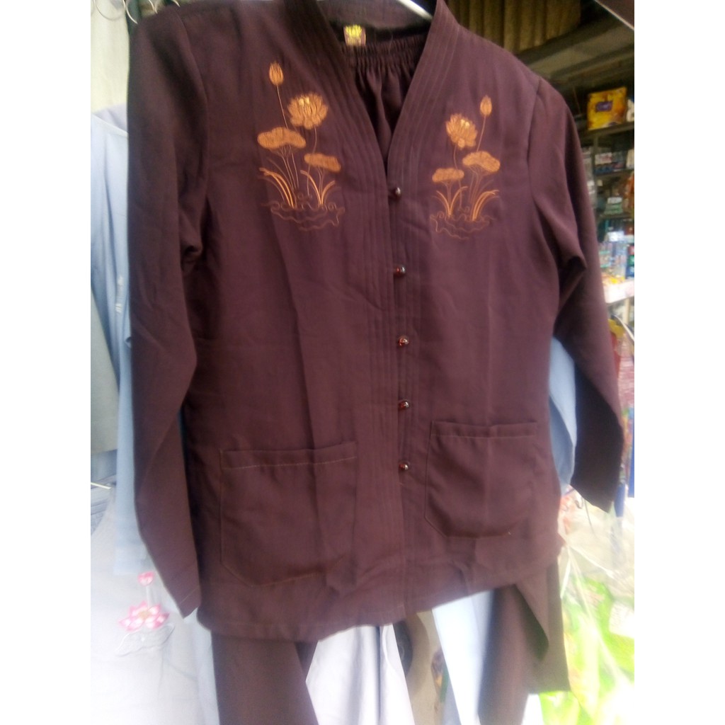 Brown or blue Buddhist temple outfit, embroidered