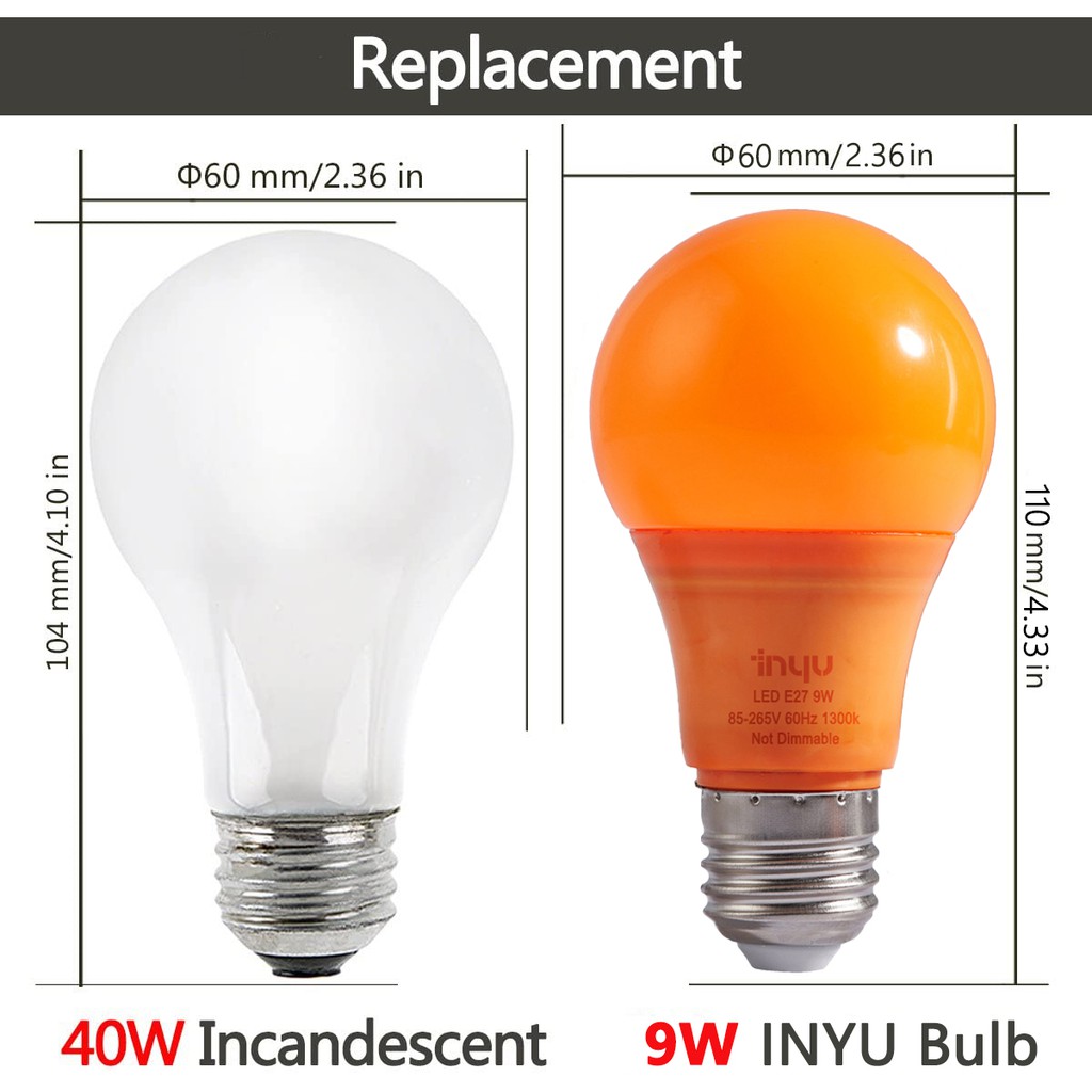 Bug Light Bulb Yellow LED Bulbs, Outdoor Porch Lights, Amber Bedroom Night Light Bulb A60 Bugs LED Bulbs, Warm LEDs Hallway Lighting Decorative Lamps(9W)
