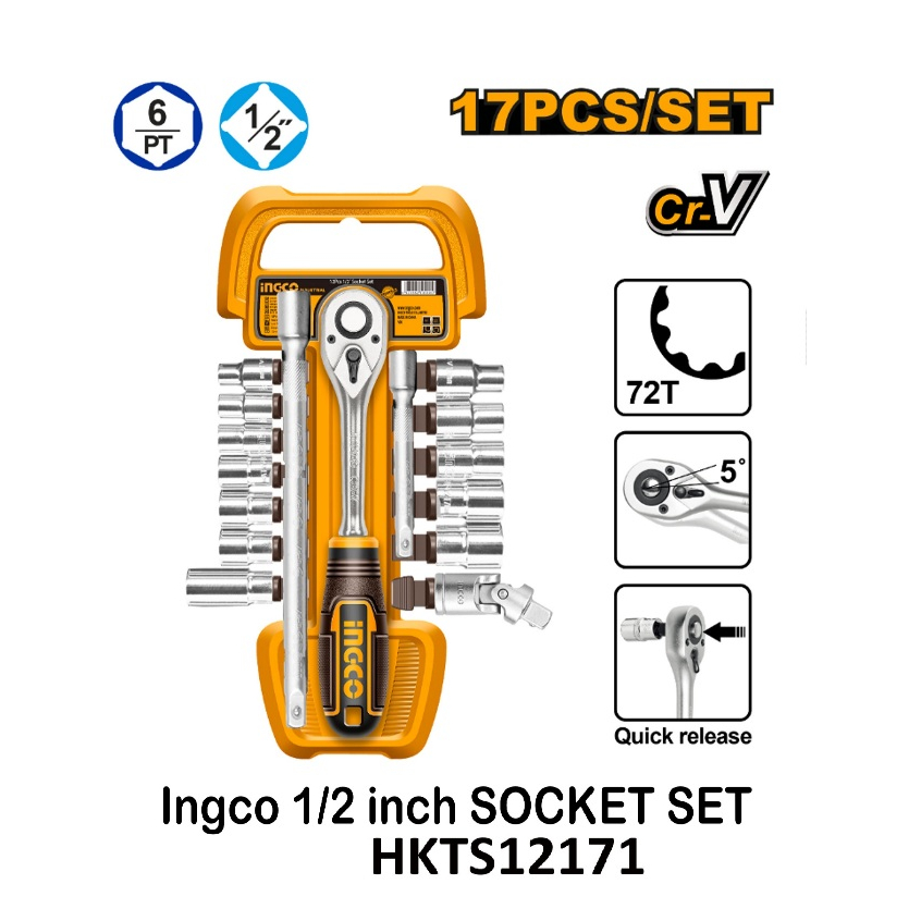 Buildmate x INGCO 17PCS 1/2 inch SOCKET SET Heavy-Duty Ratchet Set Multi-Size Socket HKTS12171 IHT