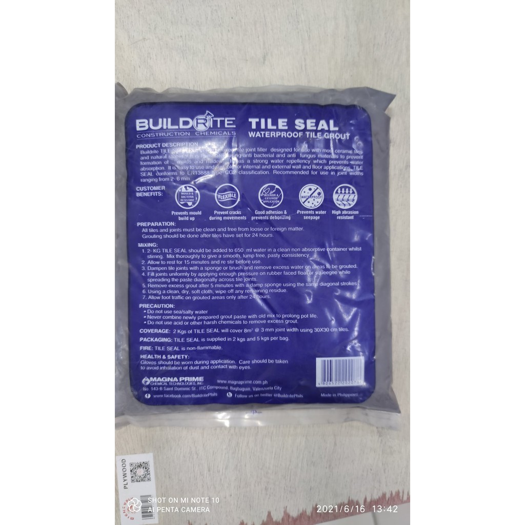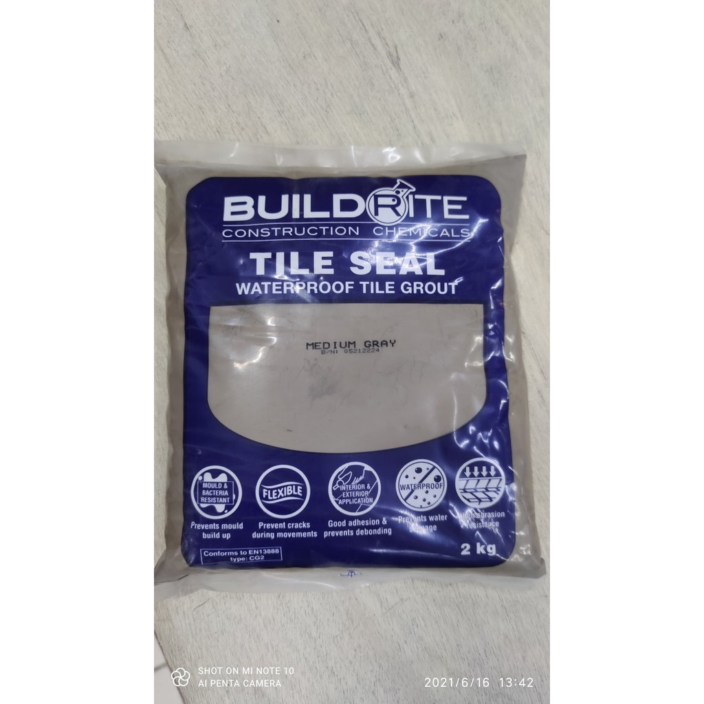 Buildrite Tile Seal Waterproof Tile Grout Medium / Dark Gray Or Black 2KG (Mold & Bacteria Resist)