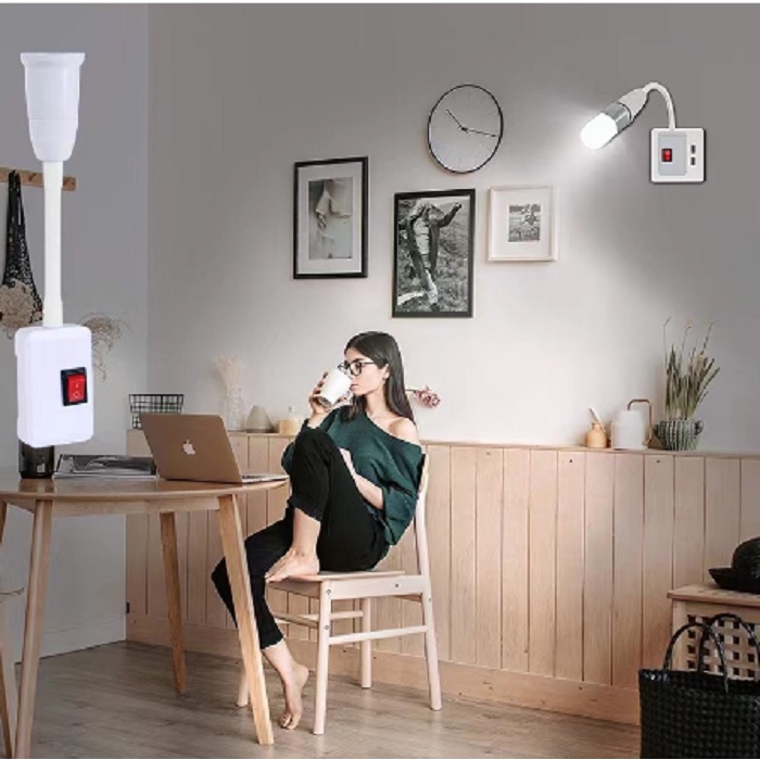 Bulb Socket Base Lamp Holder LED Light Adaptor with On/Off Switch 2-Pin Socket Extension Cords
