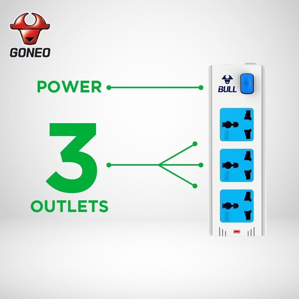 Bull Unbreakable SocketsBull 10A 3 Outlet Socket with On/Off Switch (White)