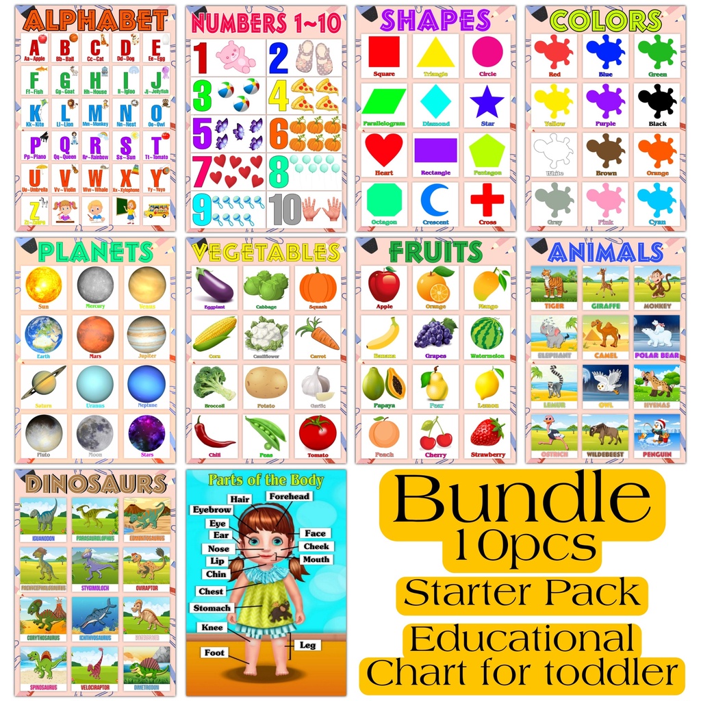 Bundle 10pcs Educational Learnings Chart Laminated