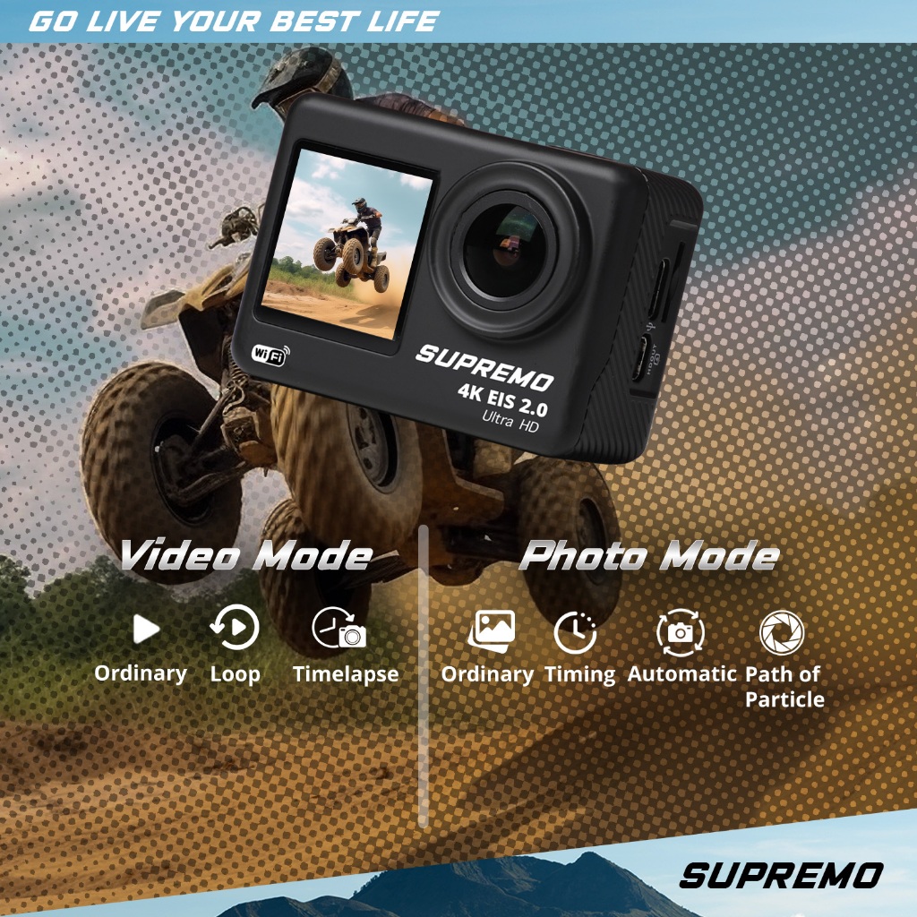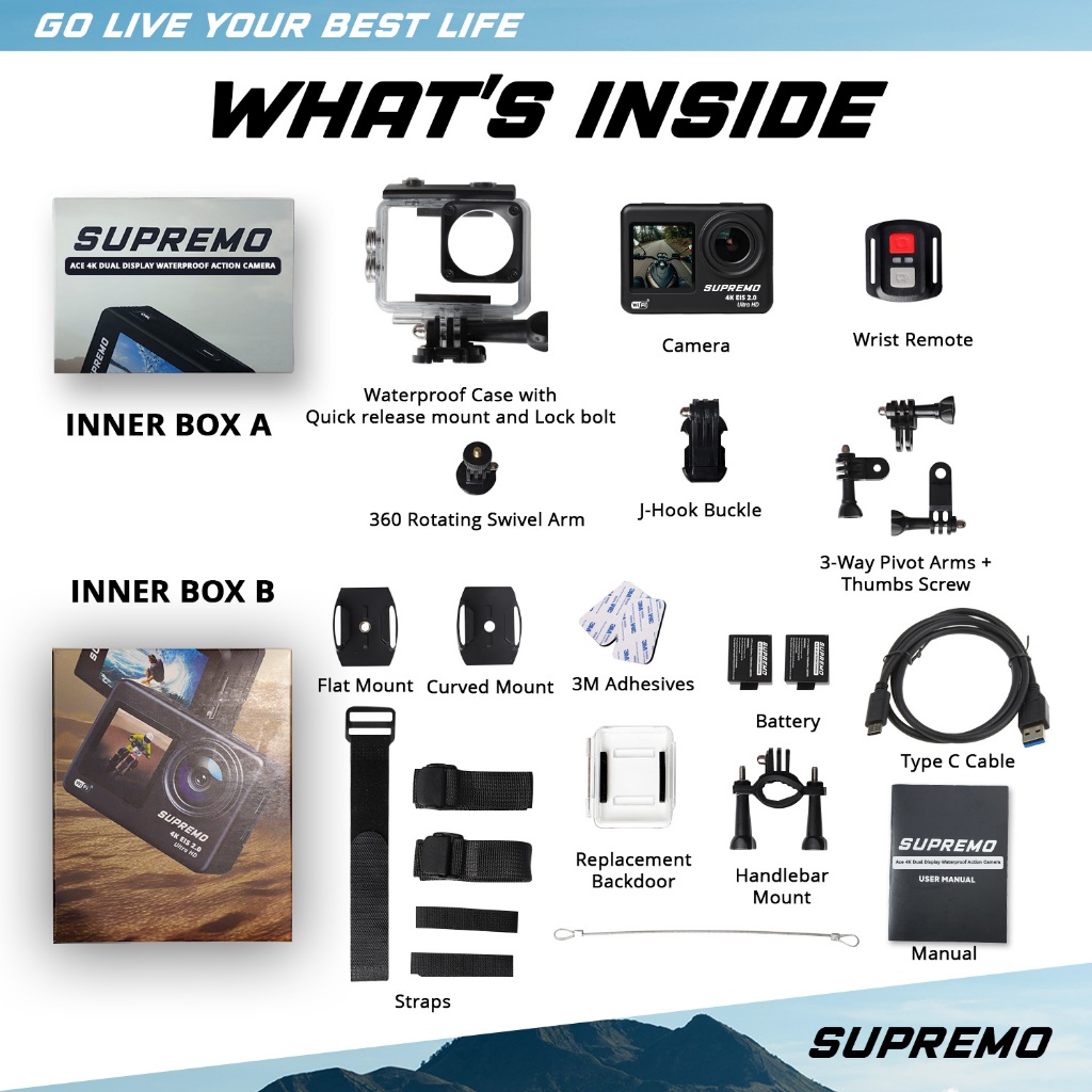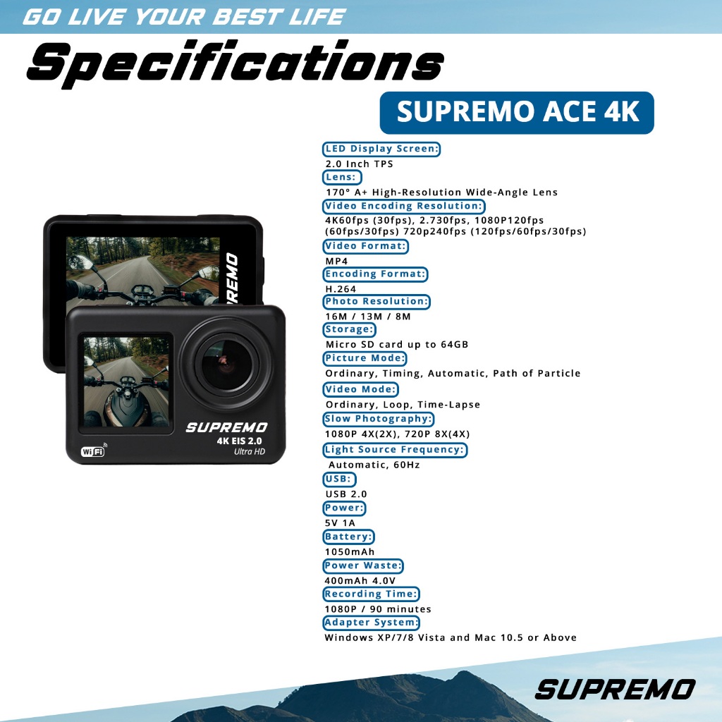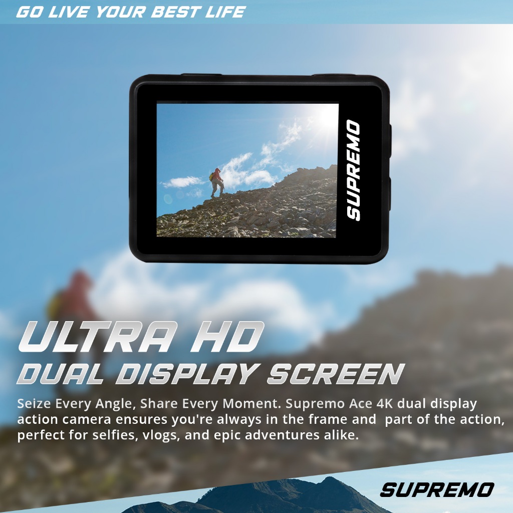 Bundle 4 Supremo Ace 4K Dual Display Waterproof + Monopod