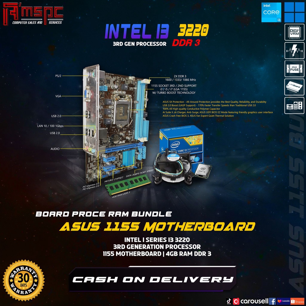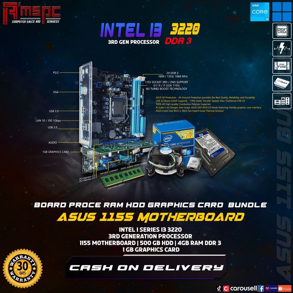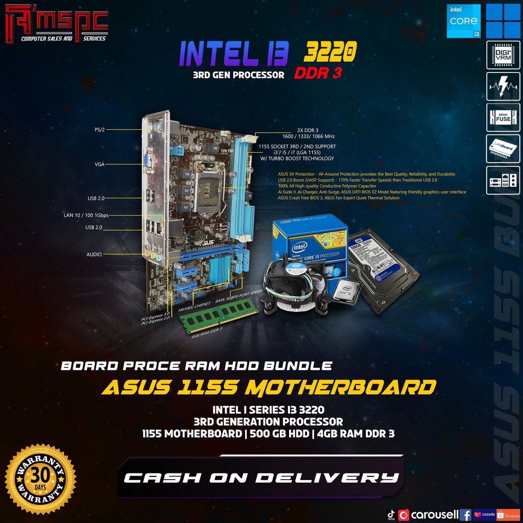 Bundle package Board + Motherboard +hsf + backplate Intel Core i3 3220 3rd gen 1155|Amstrading