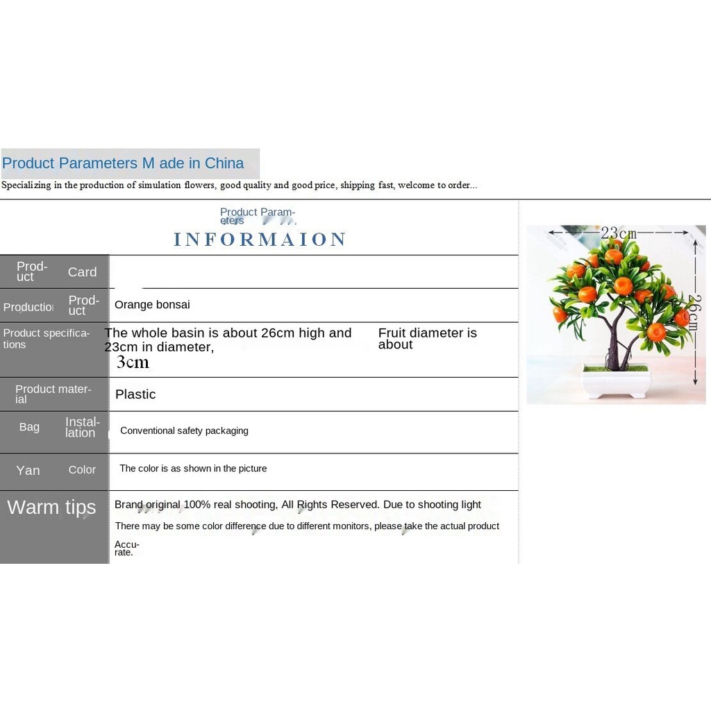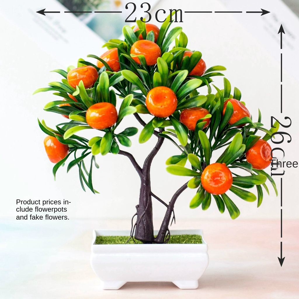 Bunga plastik bunga buatan bonsai buatan Simulation Flower Pot 16 Orange Flower Small Tree Bonsai Plastic Flowers Greenery and Fake Flowers Potted Flower Decoration Ornaments