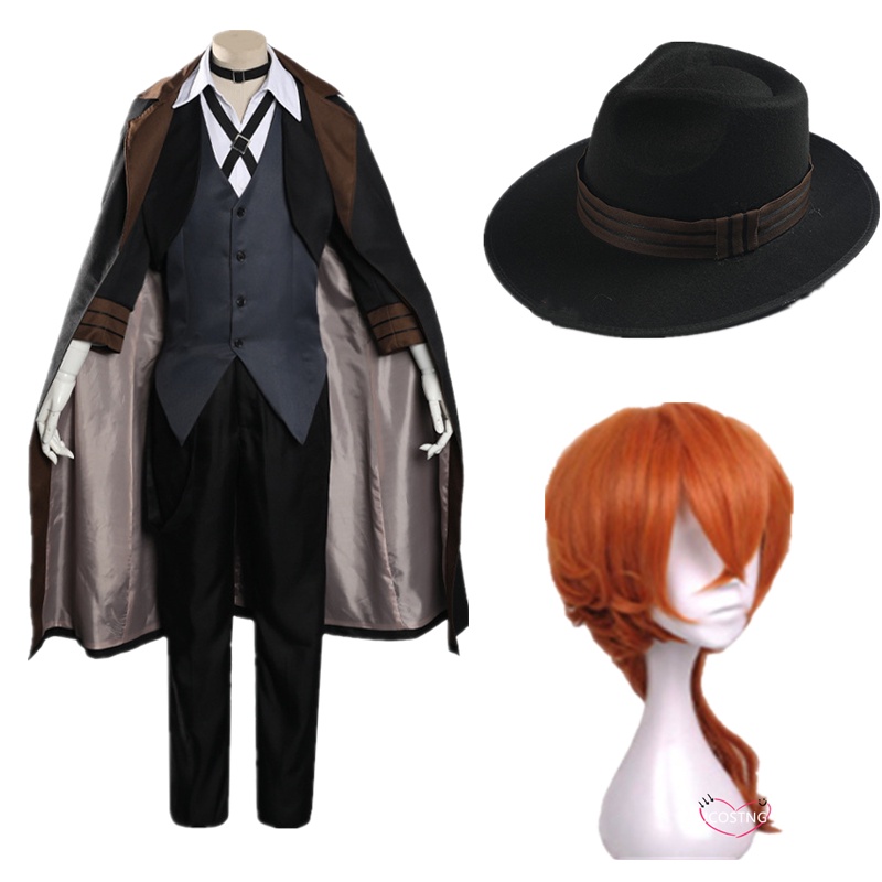Bungou Stray Dogs Men Women Nakahara Chuuya Cosplay Costume Wig Hat Glove Jacket Pants Female Chuya