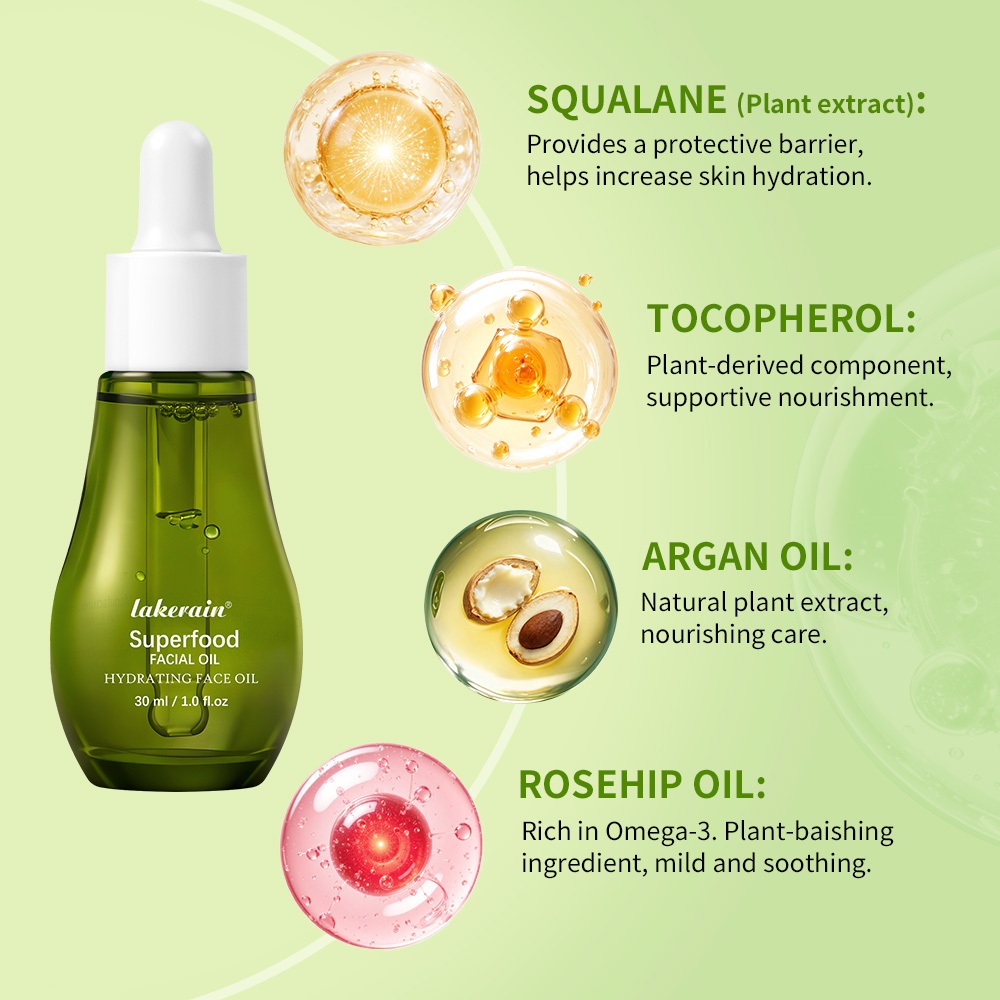 Lakerain Superfood Facial Oil 30ml | Lightweight, Non-Greasy & Hydrating for All Skin Types | Antioxidant-Rich Nourishing Serum to Brighten & Moisturize