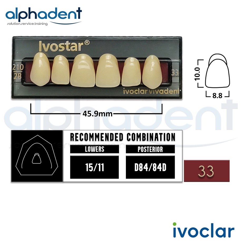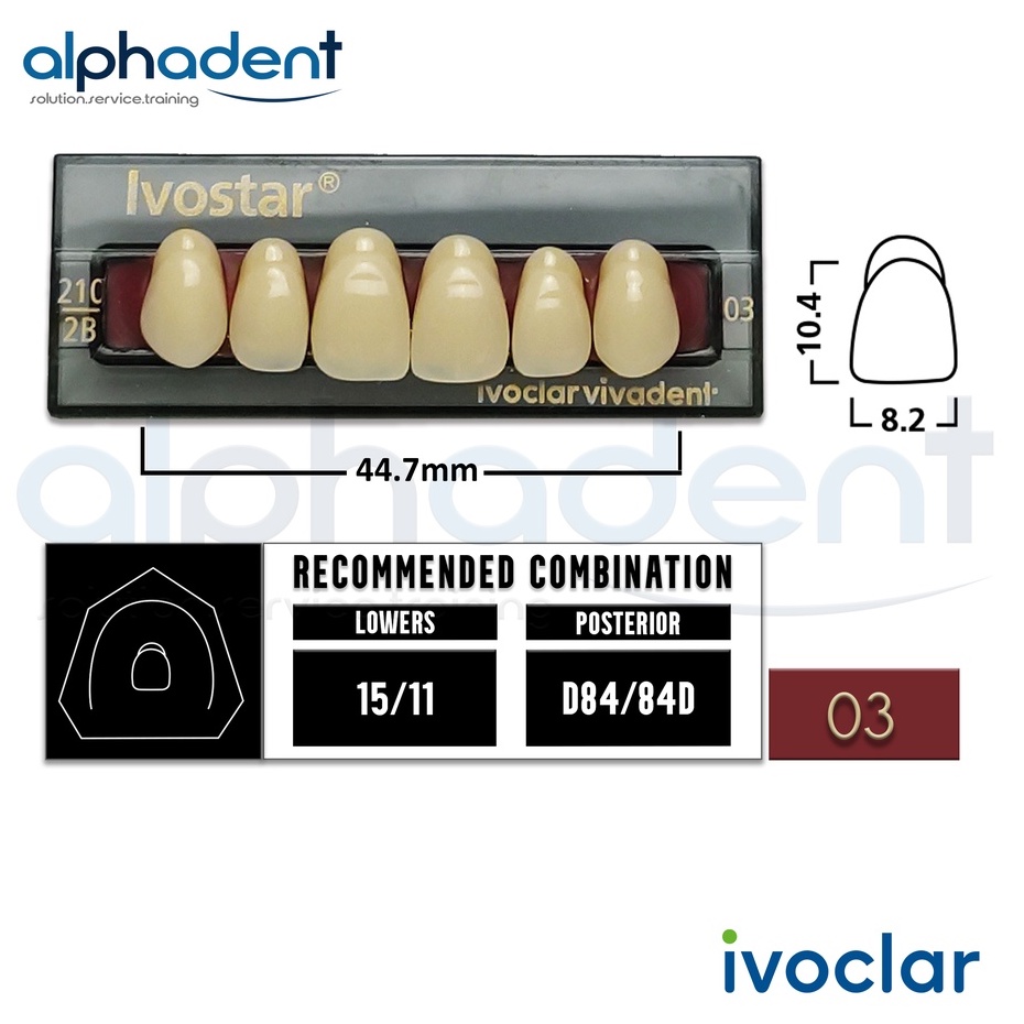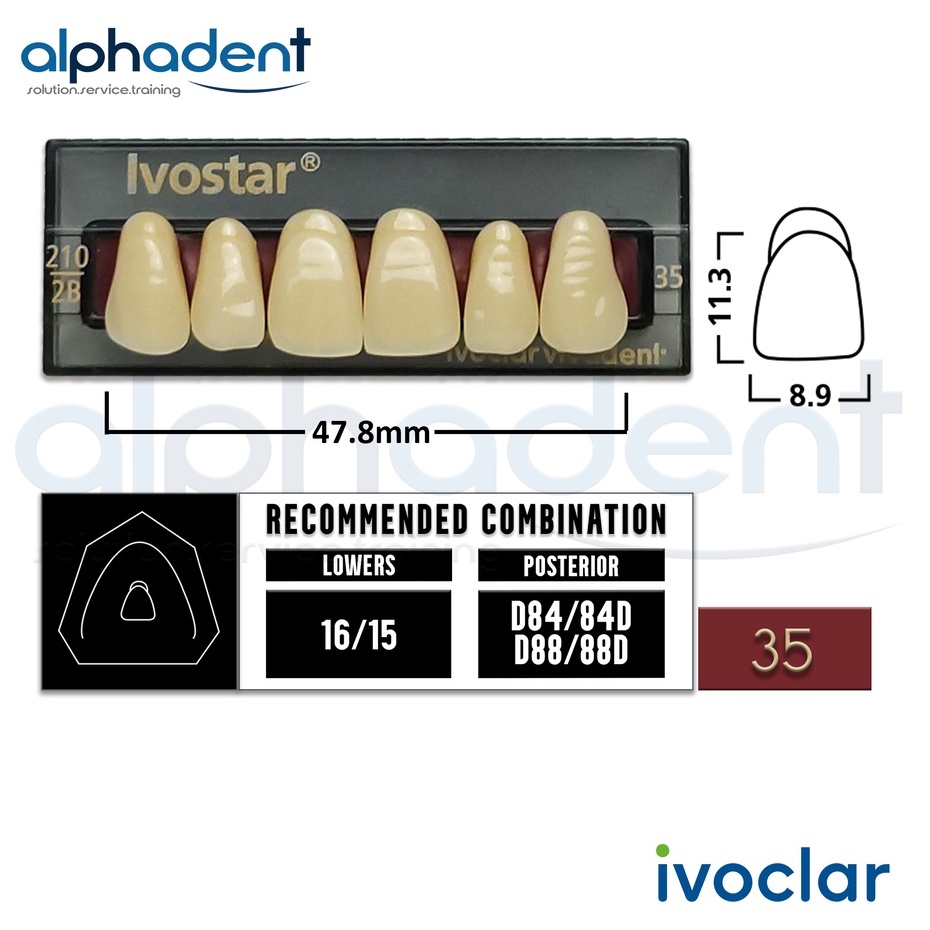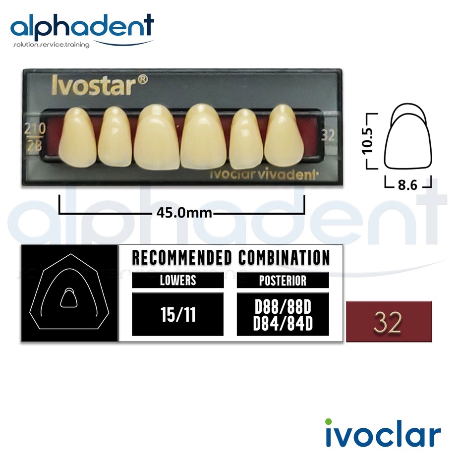 Ivostar® 1 X 6 Upper Anterior Resin Denture Teeth