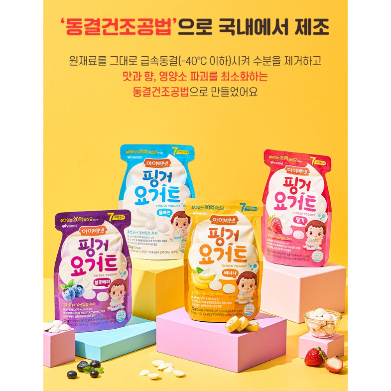 IVENET Bebe Finger Yogurt Snack (20g) | K-Baby Probiotic Freeze-Dried Food | No Salt, Melts in Mouth (+7M)