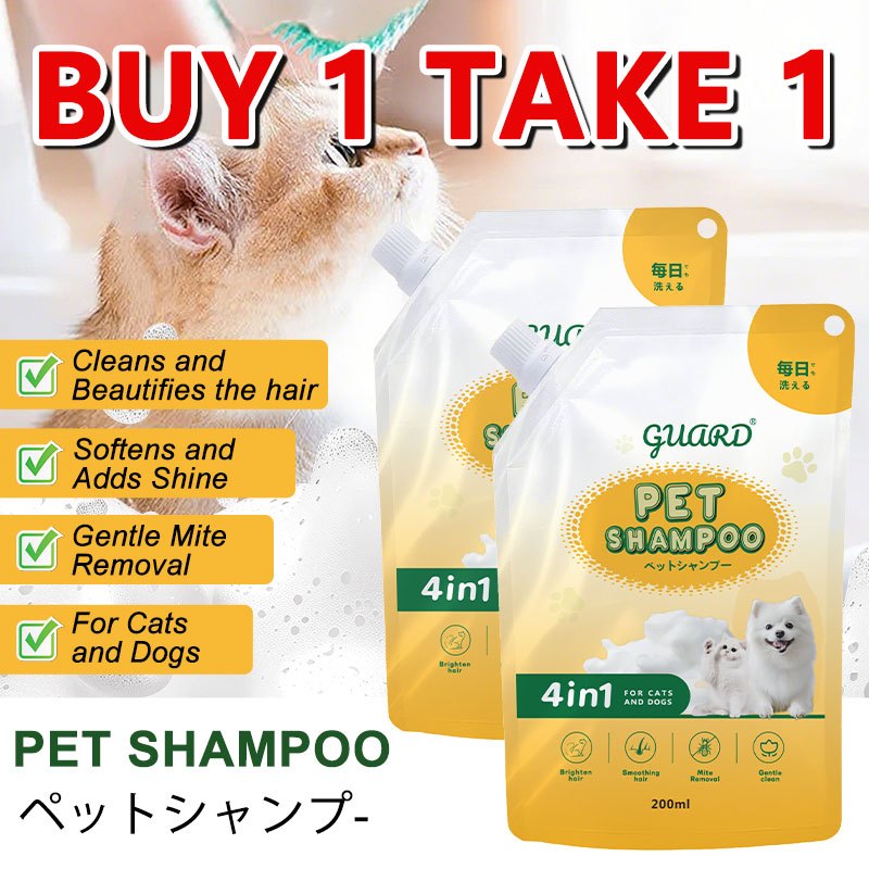 BUY 1 GET 1 FREE Pet Shampoo 200ml - 4in1 Formula for Cats & Dogs, Gentle & Brightening