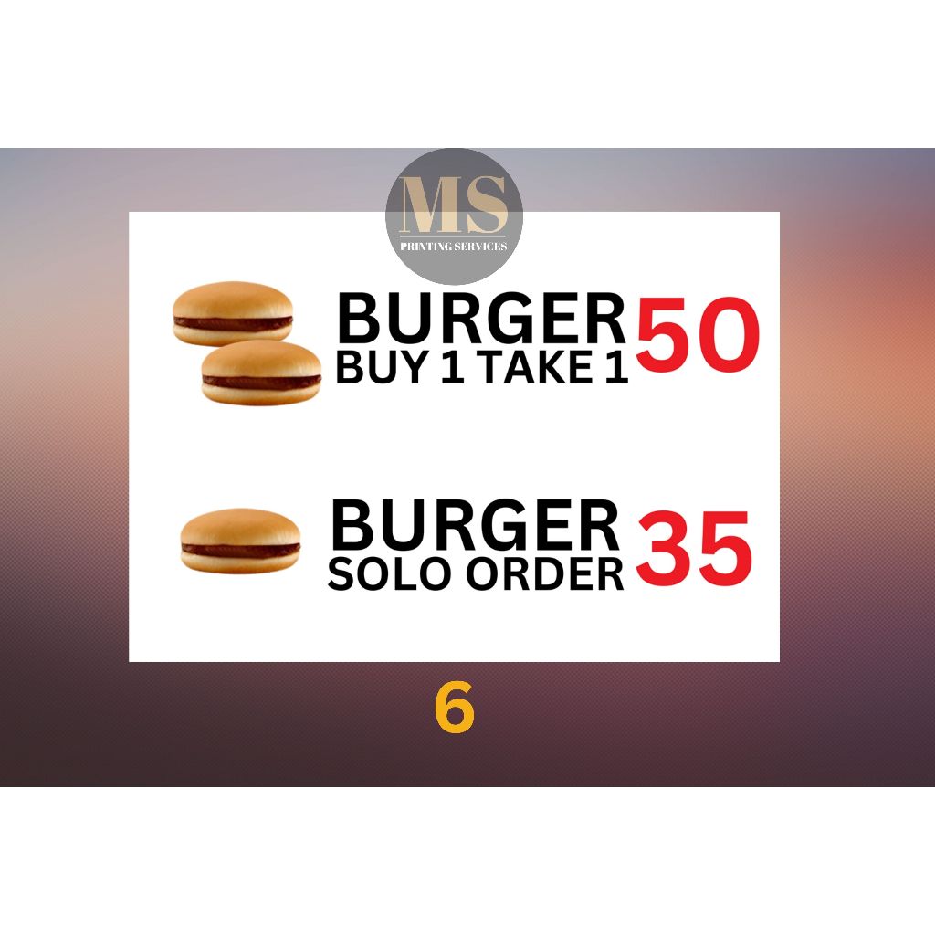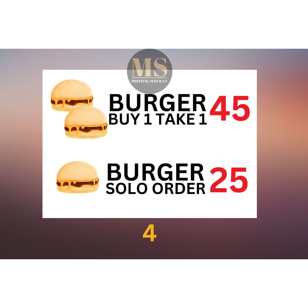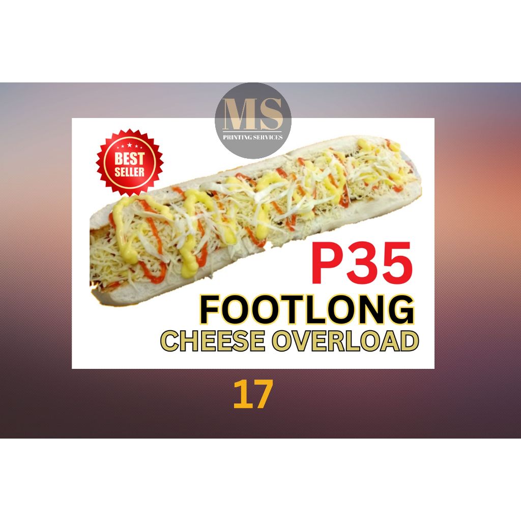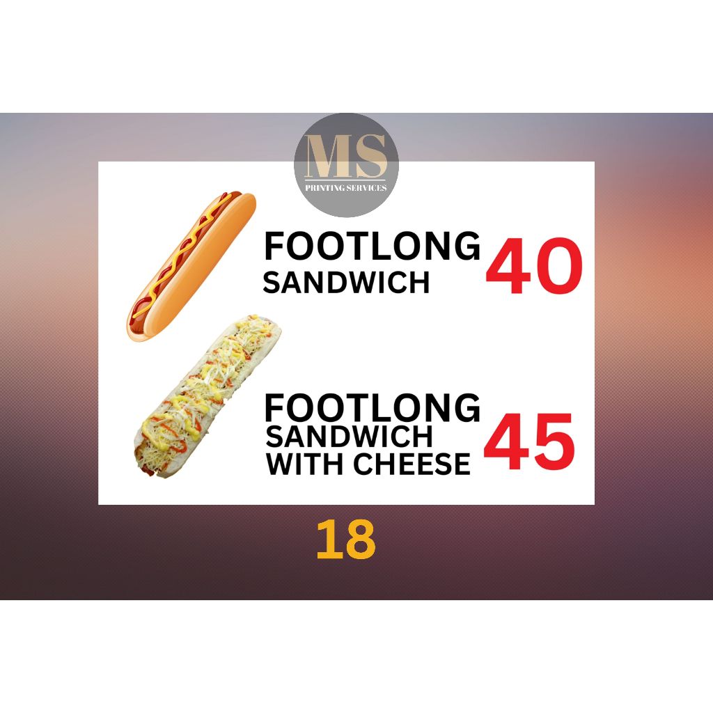Burger Hotdog Ham and Cheese Siomai Footlong Laminated Signage and Waterproof Vinyl Sticker A4 Size