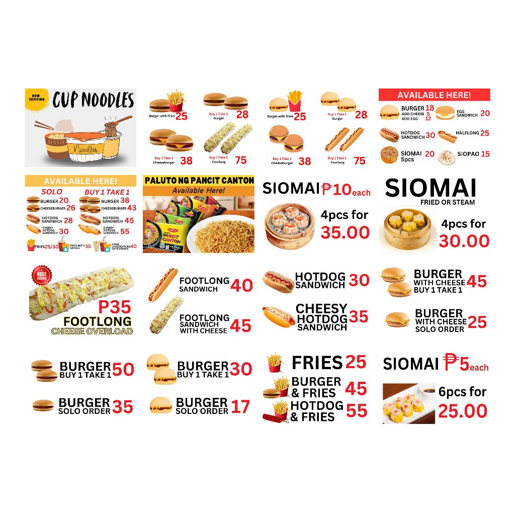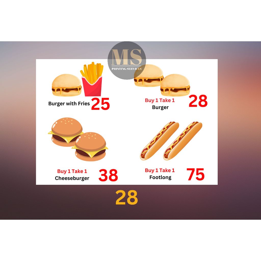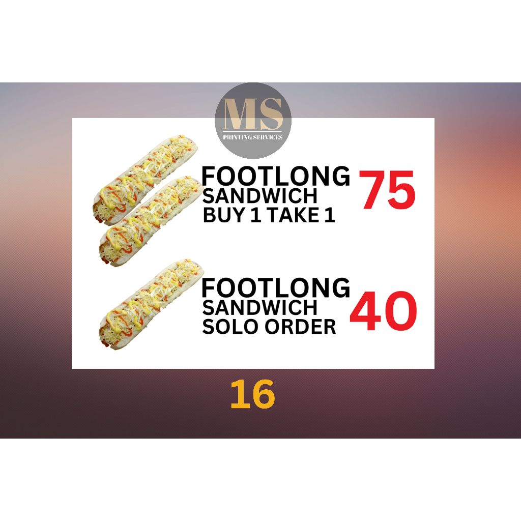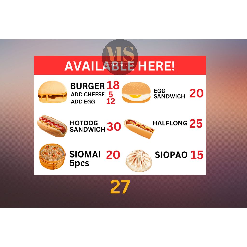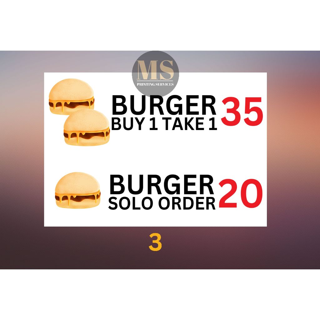 Burger Hotdog Ham and Cheese Siomai Footlong Laminated Signage and Waterproof Vinyl Sticker A4 Size