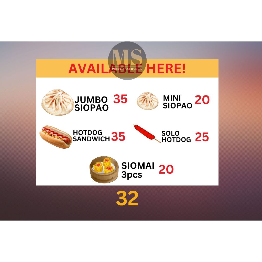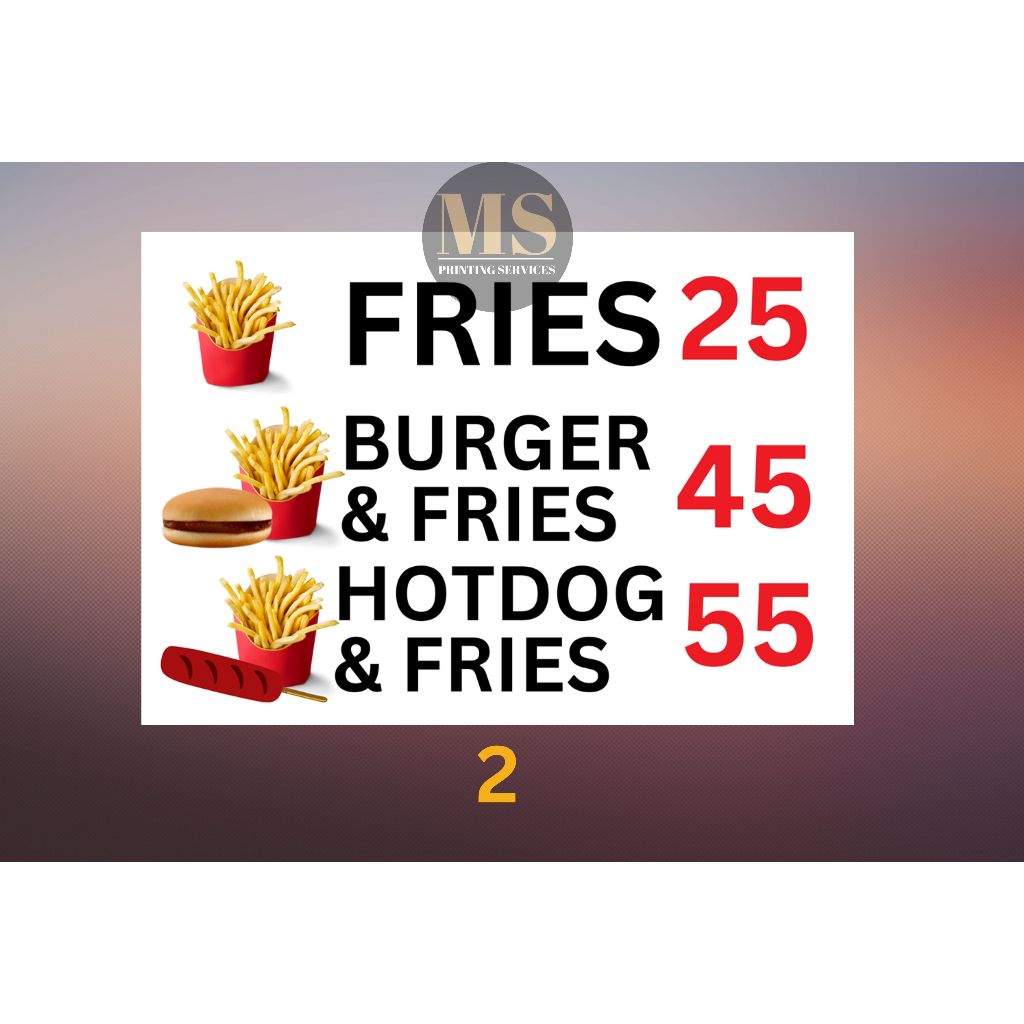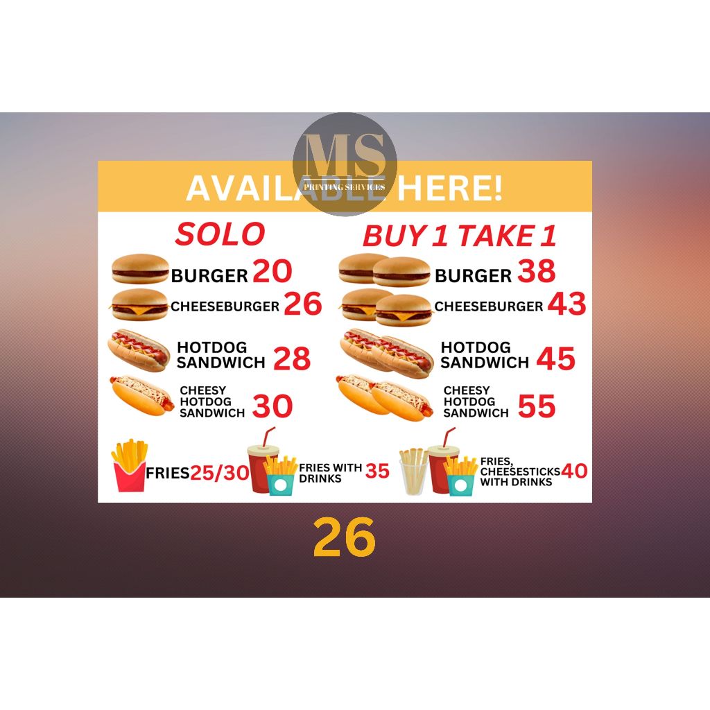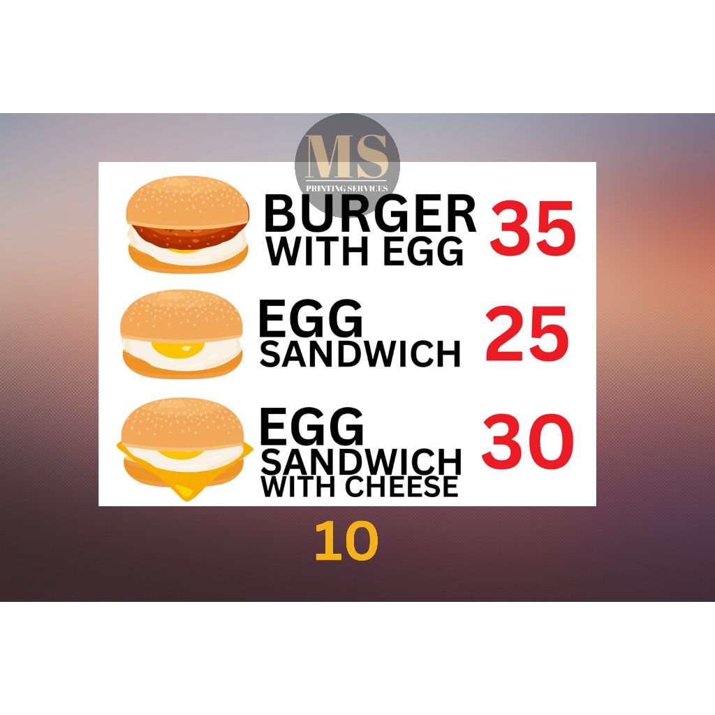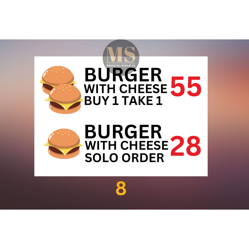 Burger Hotdog Ham and Cheese Siomai Footlong Laminated Signage and Waterproof Vinyl Sticker A4 Size