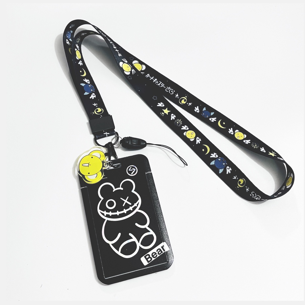 Bus Card Holder Student Meal Card Kindergarten Pick-up Card Set Brand Cute Easy-to-pull Bear Lanyard