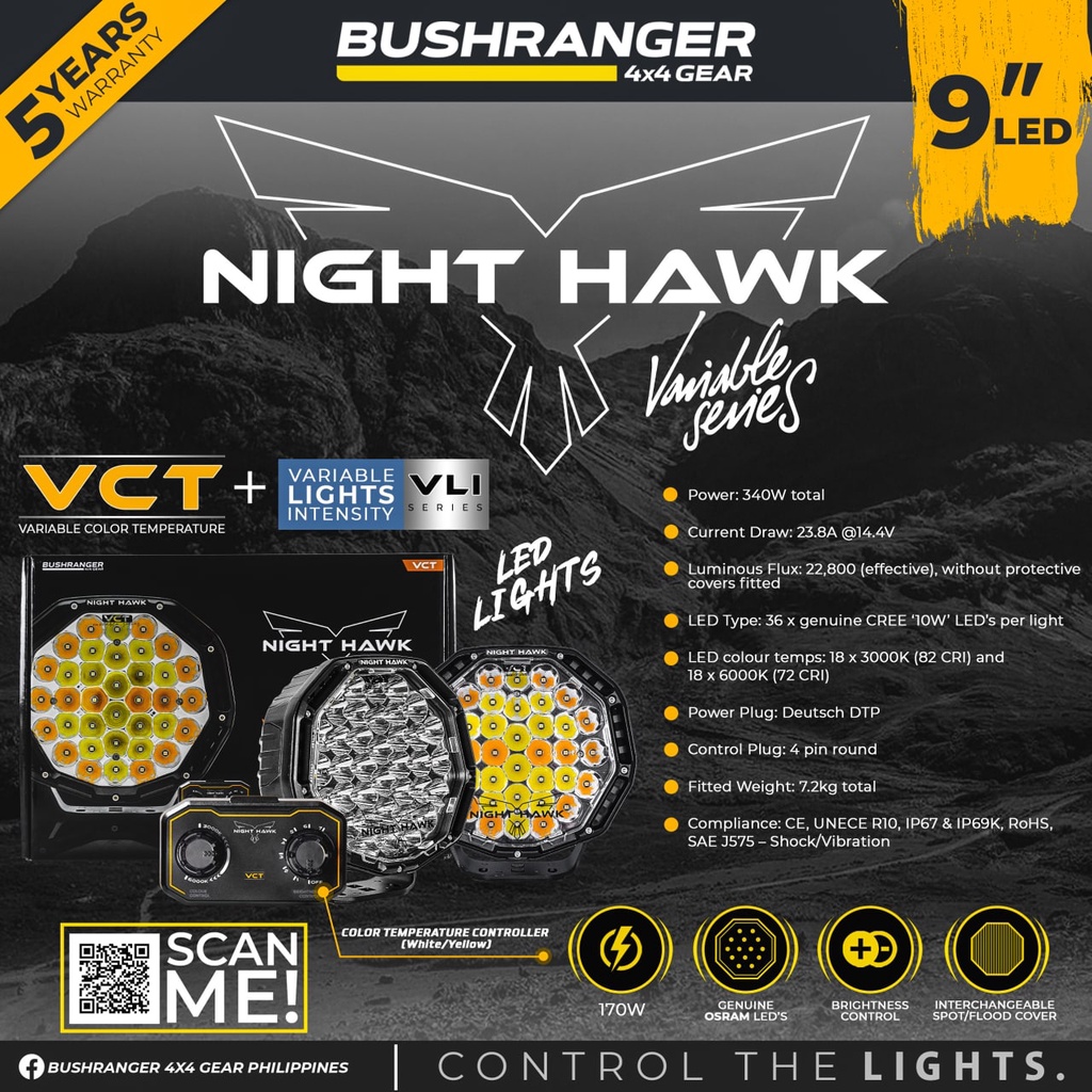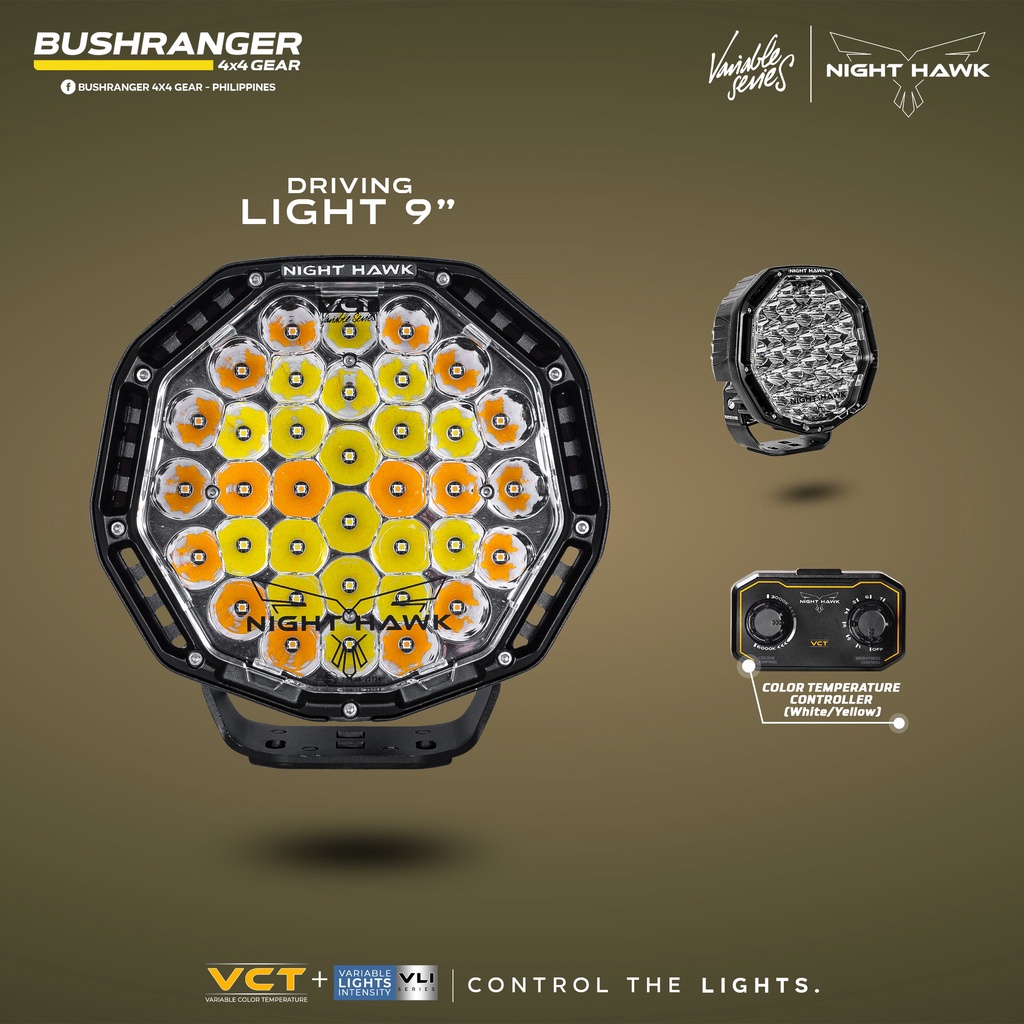 Bushranger Night Hawk VCT LED 9" Off-road Driving Light Dual Color Amber & White Pair Genuine