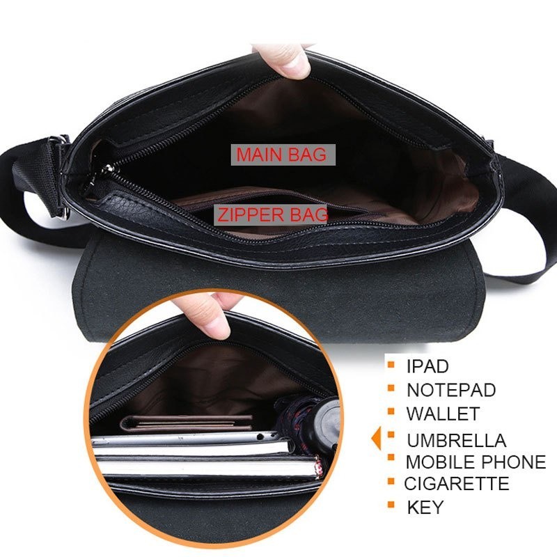 Business document leather shoulder bag for men's large capacity crossbody bag