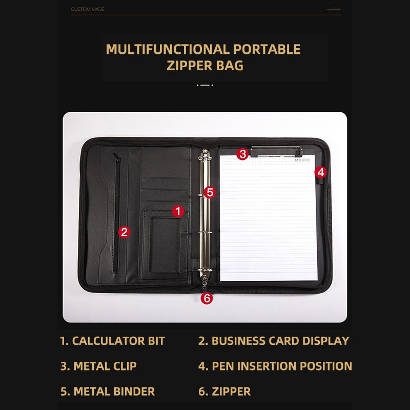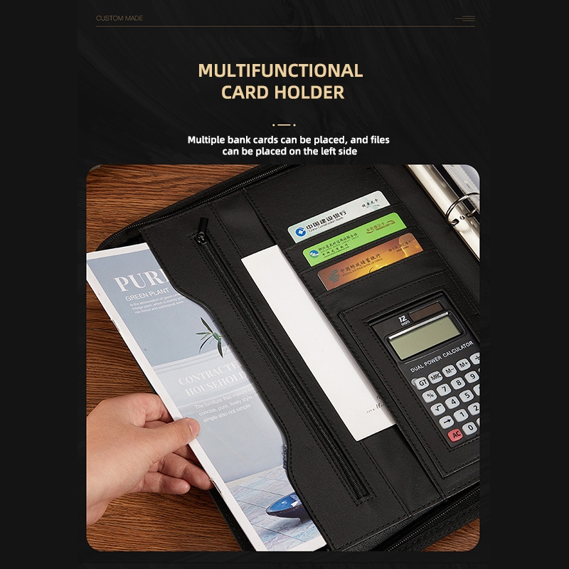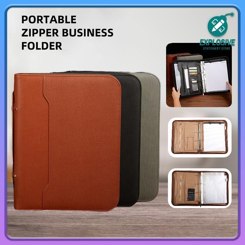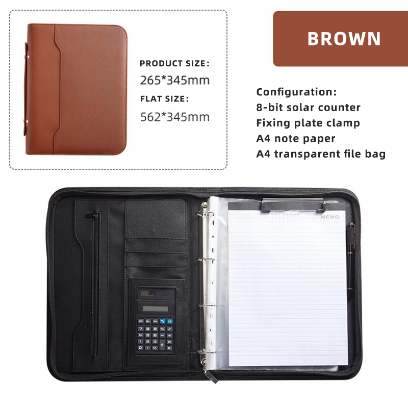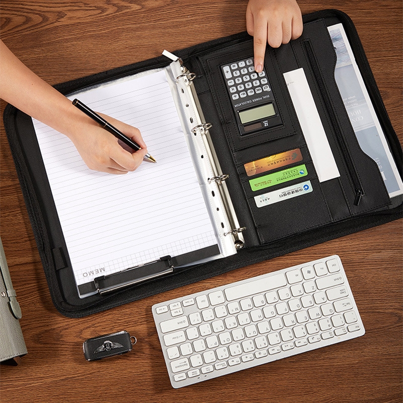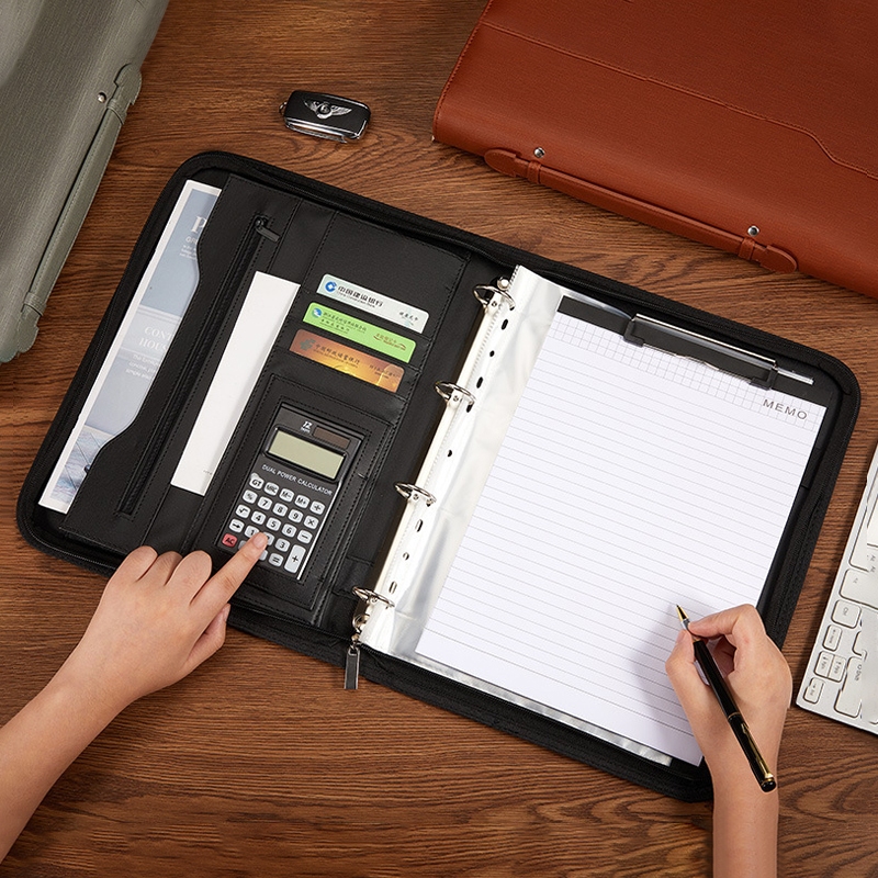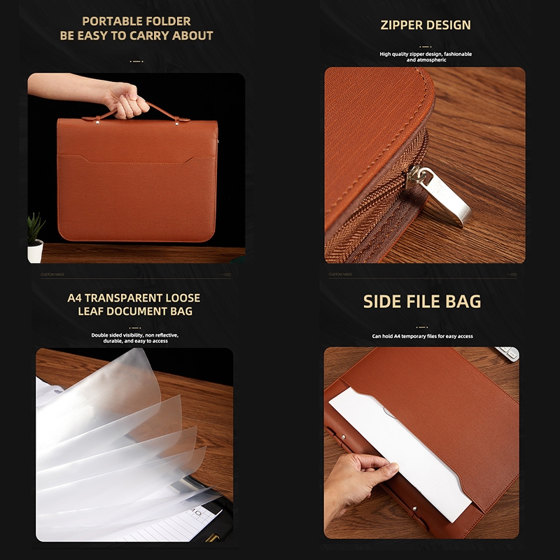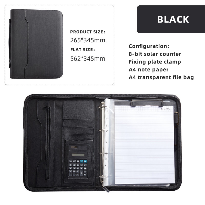 Business multifunctional a4 folder PU binder information contract portable zipper briefcase