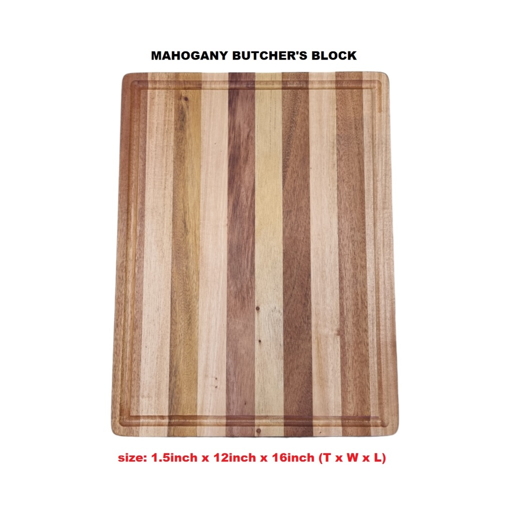 Butcher Block (Edge Grain) Genuine Mahogany Wood 1.5" x 12" x 16"