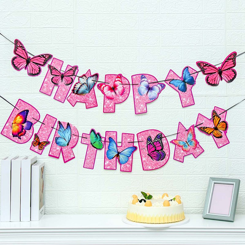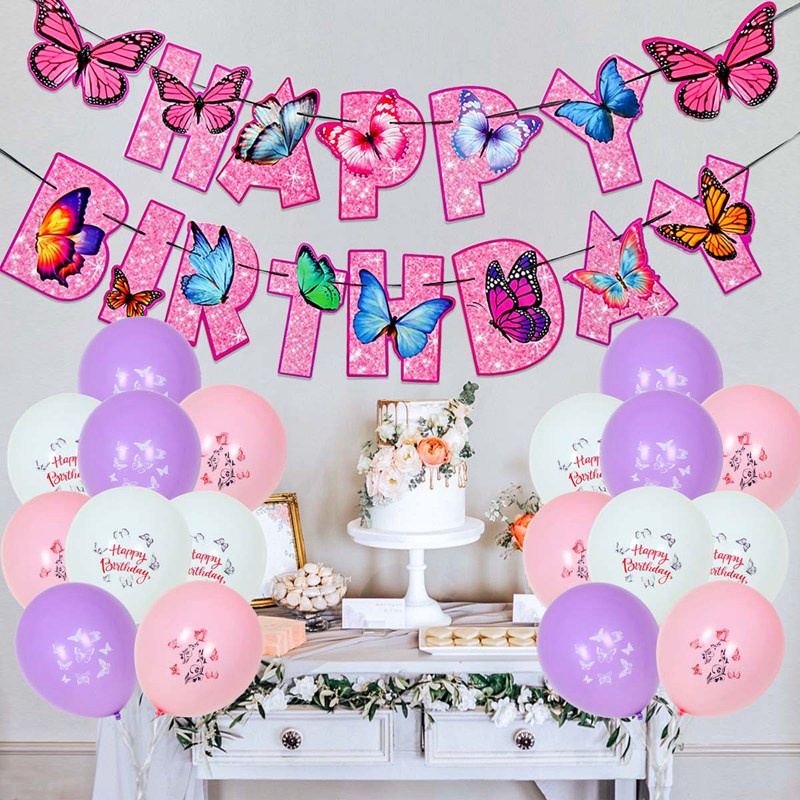 Butterfly Happy Birthday Party Decoration Banner Birthday Decor Party Decorations Birthday Decoration Set Butterfly Happy Birthday Banner Butterfly Birthday Balloons Set Party Need