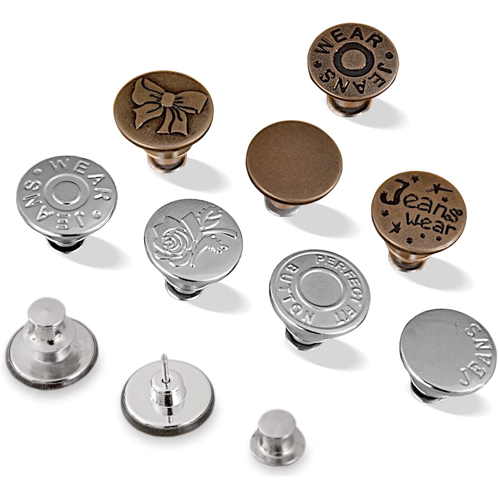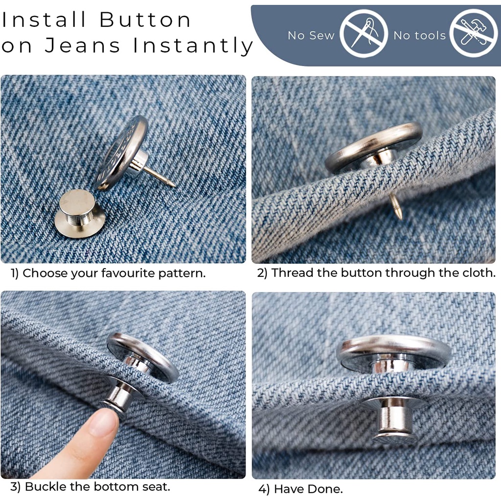 Button Pin for Jeans, Perfect Fit Adjustable Replacement Jean Button, No Sew No Tool