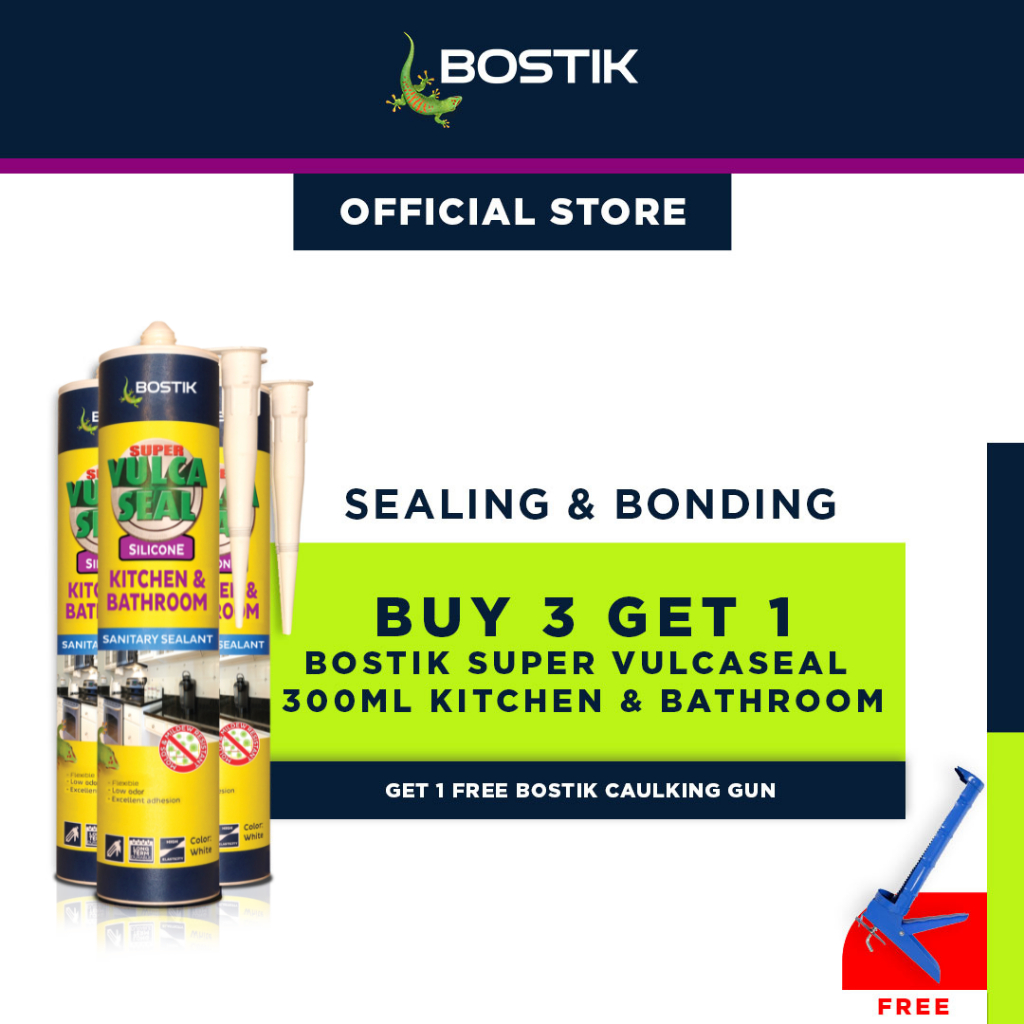 Buy 3 Bostik Super Vulcaseal Kitchen and Bathroom 300ml Get 1 FREE Bostik Caulking Gun